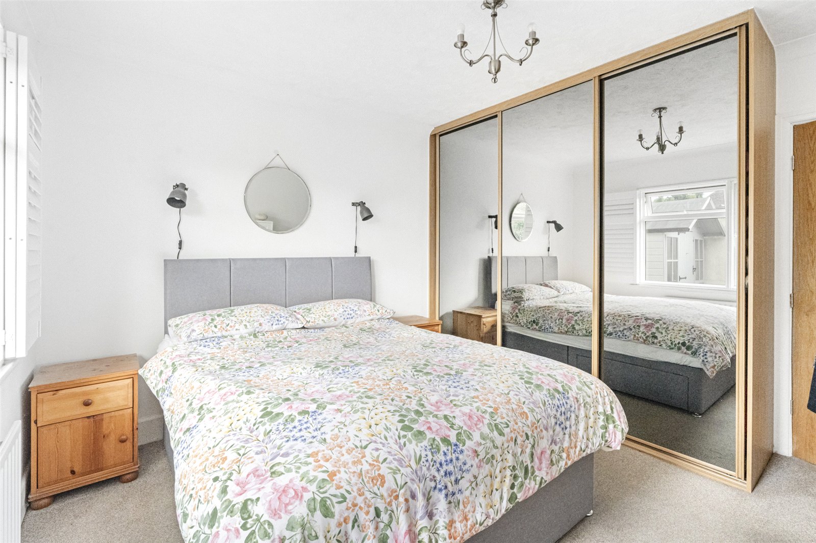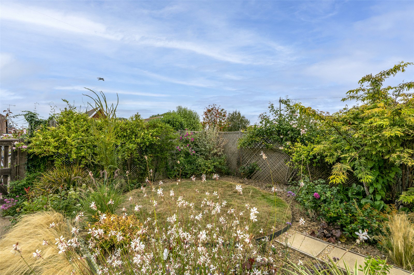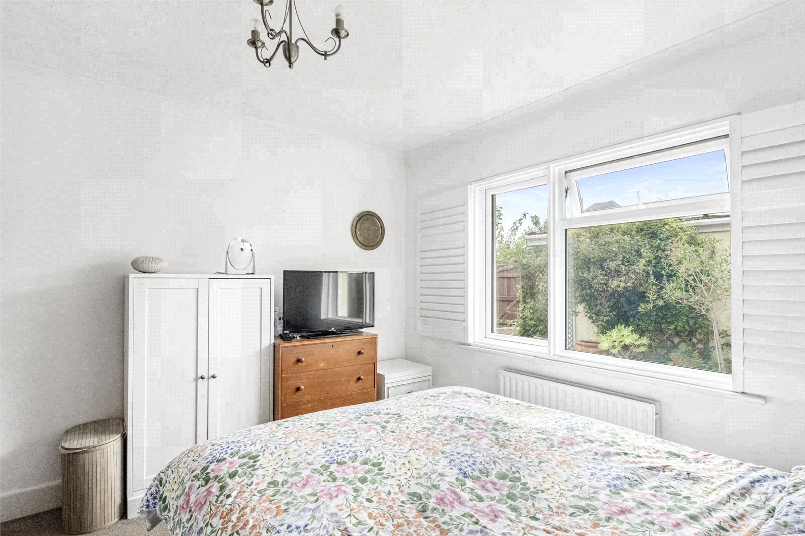 The front of this lovely bungalow has a wide multicar driveway and a lawned garden planted with a colourful array of flowers and shrubbery. There are two side paths to the rear that lead into the south facing courtyard where there is a wooden garden shed and ample room for garden furniture. Beyond is a very large garage with a roller electric door and useful electricity inside. A double gate leads out on to a private road.