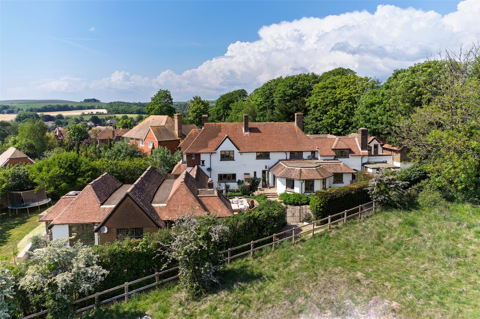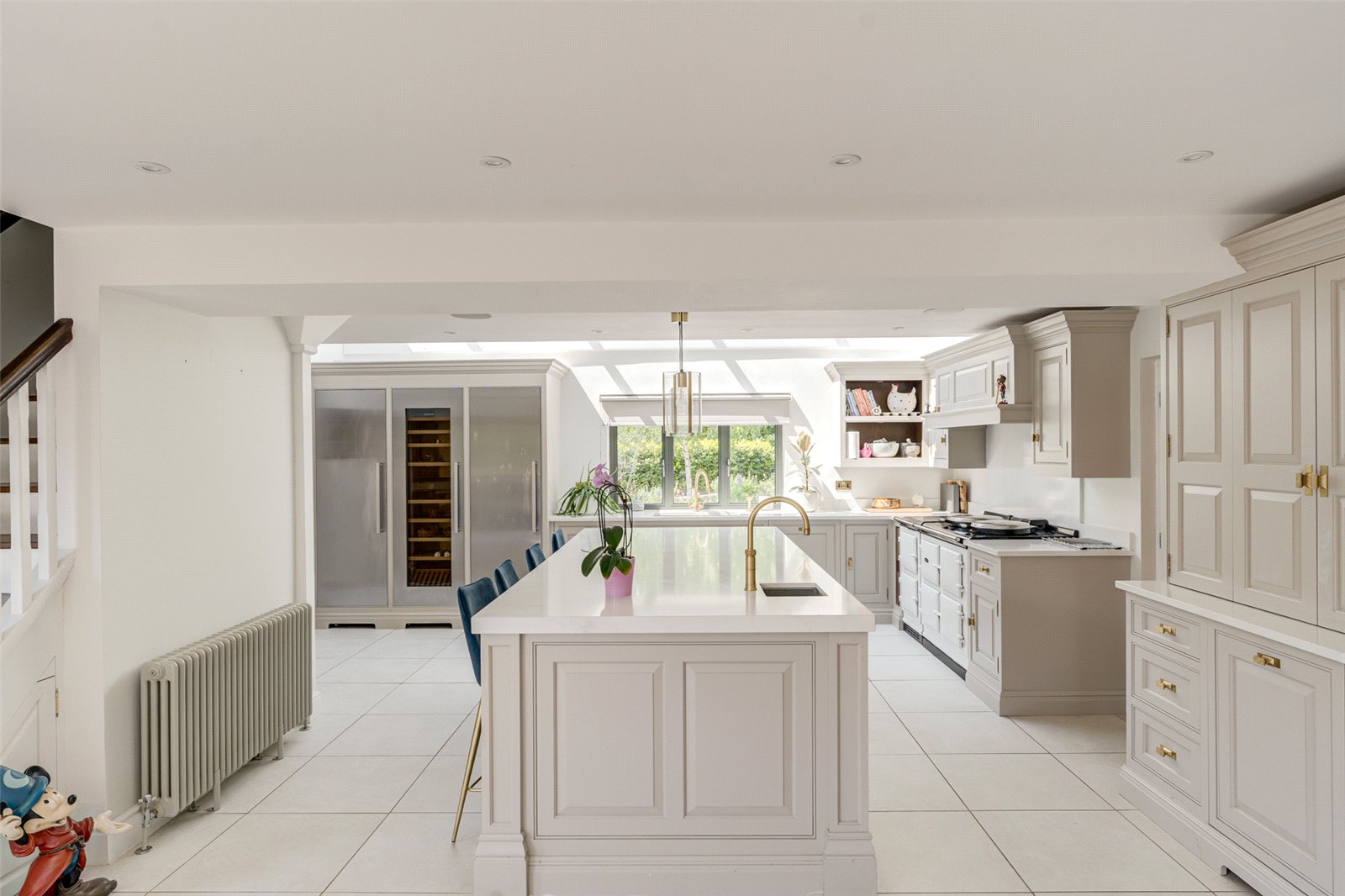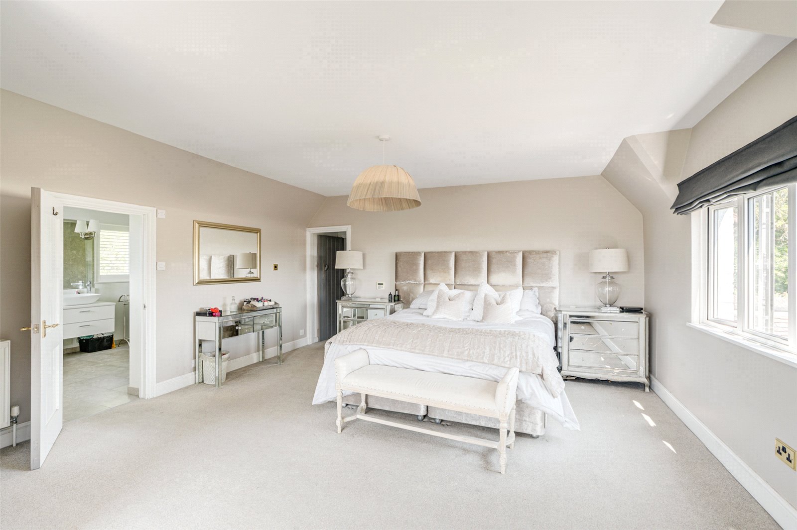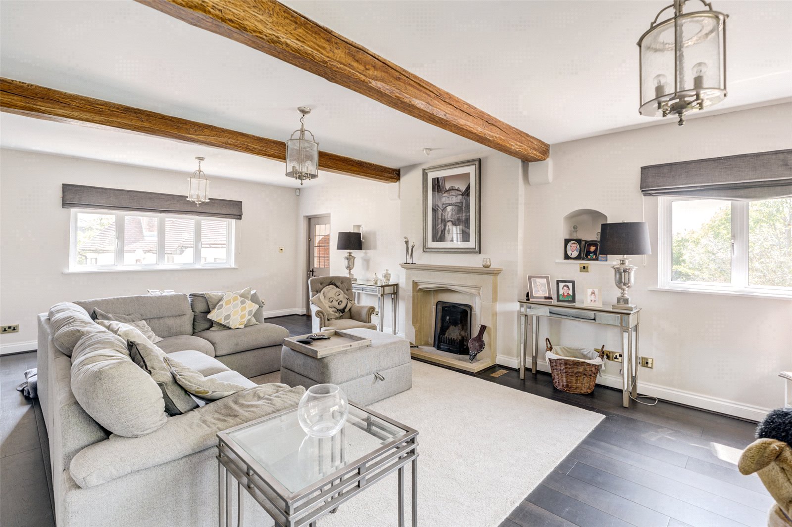 The welcoming entrance vestibule leads to a spacious inner hallway which, in turn, gives access to the stunning open plan kitchen/dining room, with double doors to the rear garden and a bespoke refitted kitchen area, with large island and Aga. There is an adjacent utility room, ground floor cloakroom and office/playroom, whilst the spacious, triple aspect living room has an attractive open fireplace and door to a triple aspect garden room. This connects to the superb indoor pool area, with heated indoor pool, sun room, sauna, WC and shower/changing room.