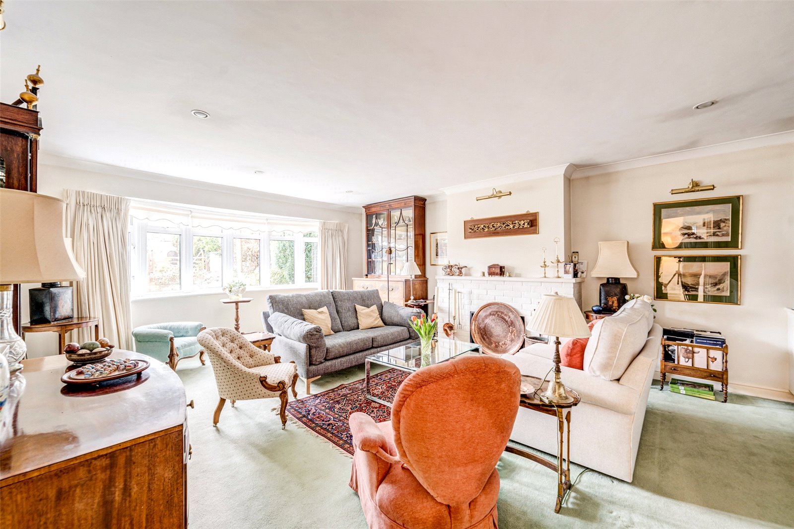 Entering the home, you will first come in to the porch, the perfect spot to take off shoes and coats with hanging rail to store before heading in to the main part of the property. The spacious L-shaped entrance hall is a grand space with two built in double cupboards as you follow the hallway along. The first room you will come to is the large bay fronted lounge, measuring at over 300 sq. ft. Facing West, the room is flooded with natural sunlight and offers a feature gas fireplace along with a wall length built in storage. Following the hallway to the end you come to the area of the property with the three double bedrooms. The main bedroom is a very generous double with a bay frontage and three built in double wardrobes. The ensuite to the main bedroom offers a shower with hand basin, bidet and WC all lit with a south facing frosted window. The other two double bedrooms are on the rear of the property, both with built in wardrobe space although the third bedroom is currently set up as a study. The family bathroom offers tiled walls, a bath and separate shower, hand basin, WC and a further, frosted, South facing window. Back through the hallway you will finally find the formal dining room. A large space perfect for gatherings with sliding doors that lead through to the conservatory as well as a door leading into the kitchen. The well presented shaker style kitchen offers counter and cupboard space to three sides with integrated white goods, gas hob and windows along with door leading in to the utility room. The utility space offers further counter and cupboard space with room beneath for washer and separate dryer and side access to the conservatory. The conservatory to the rear stretches almost the full width of the bungalow measuring up at approximately 38 feet long. This room offers a panoramic view of the rear garden and beyond as well as giving direct access to the rear garden.