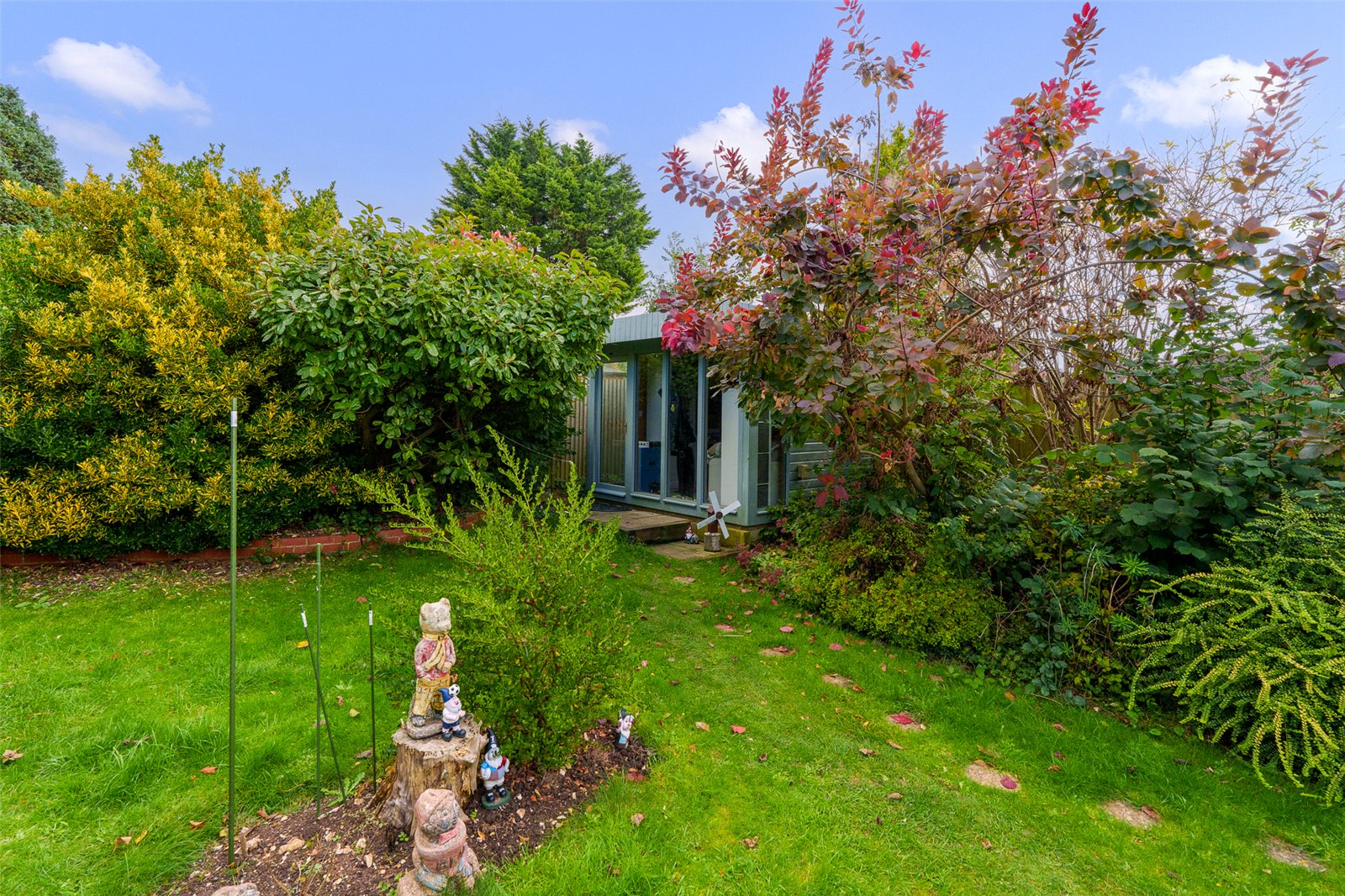 To the outside, the front garden has block paved driveway giving ample off road parking and leads to a garage with power, light, electric door and rear access. Side access also leads to a good sized rear garden, being mainly laid to lawn, having paved patio area, two garden sheds, a utility room/store and a feature garden office/cabin.