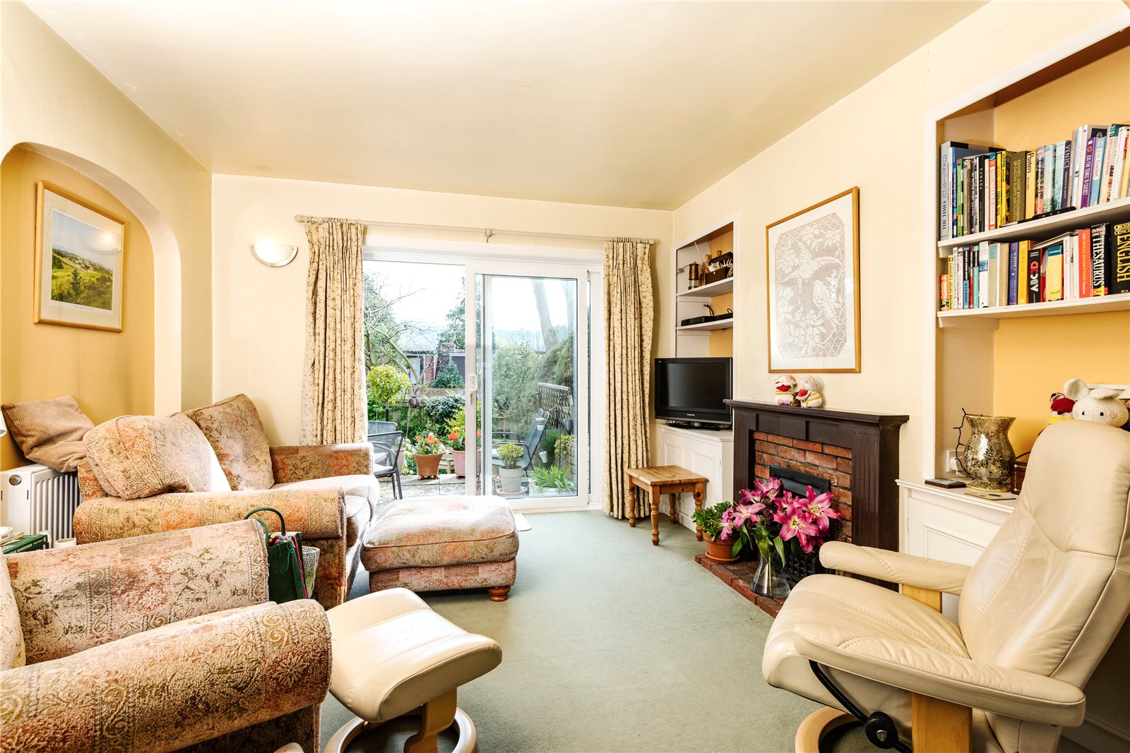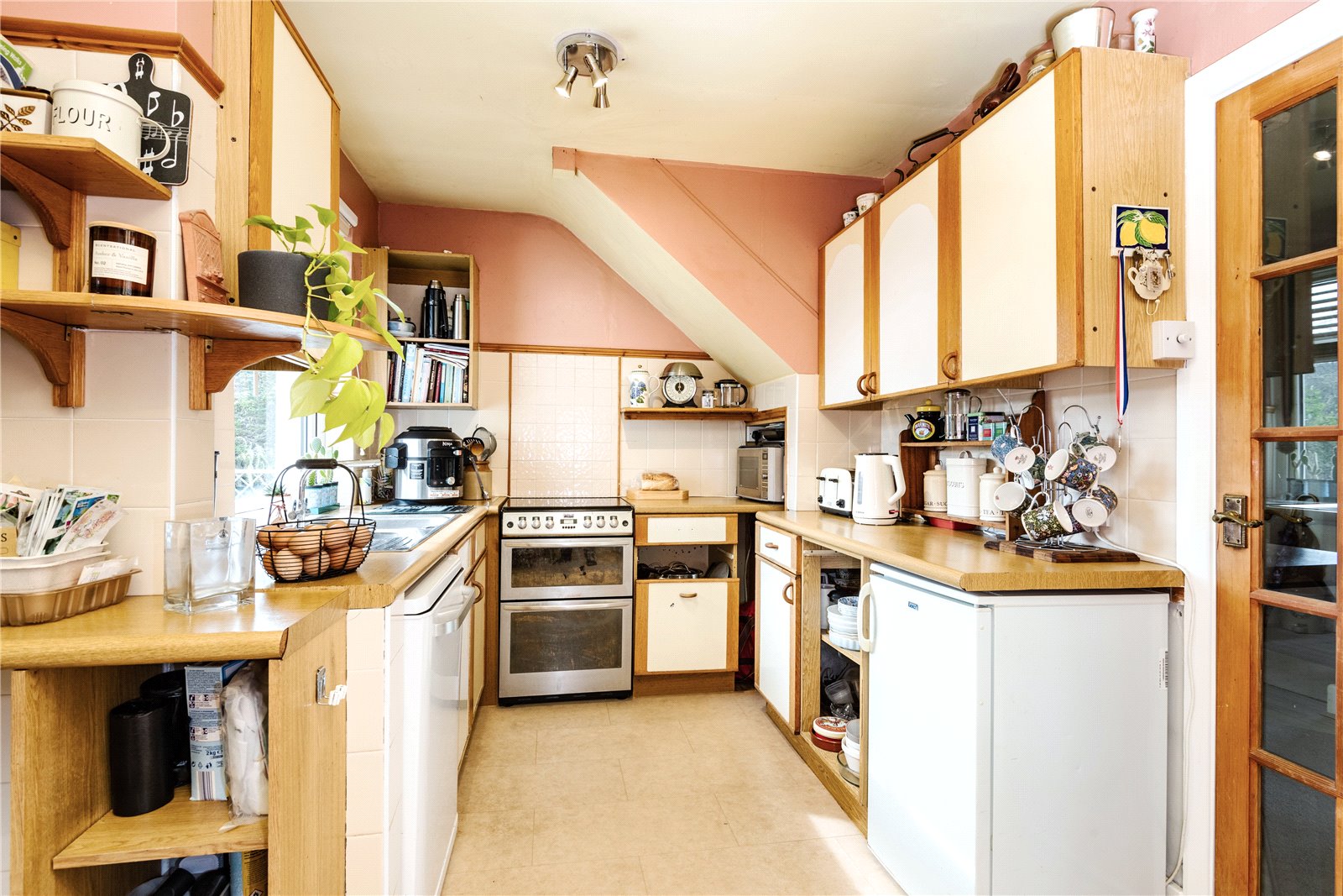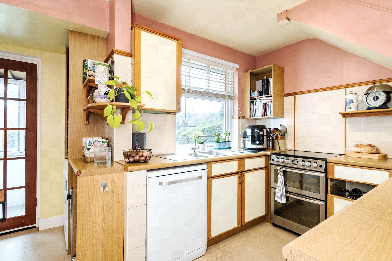 To the outside, the front garden is mainly laid as off road parking and has side access leading to the attractive south/westerly facing rear garden, with lawned and patio areas, well stocked flower beds and borders and three garden sheds.