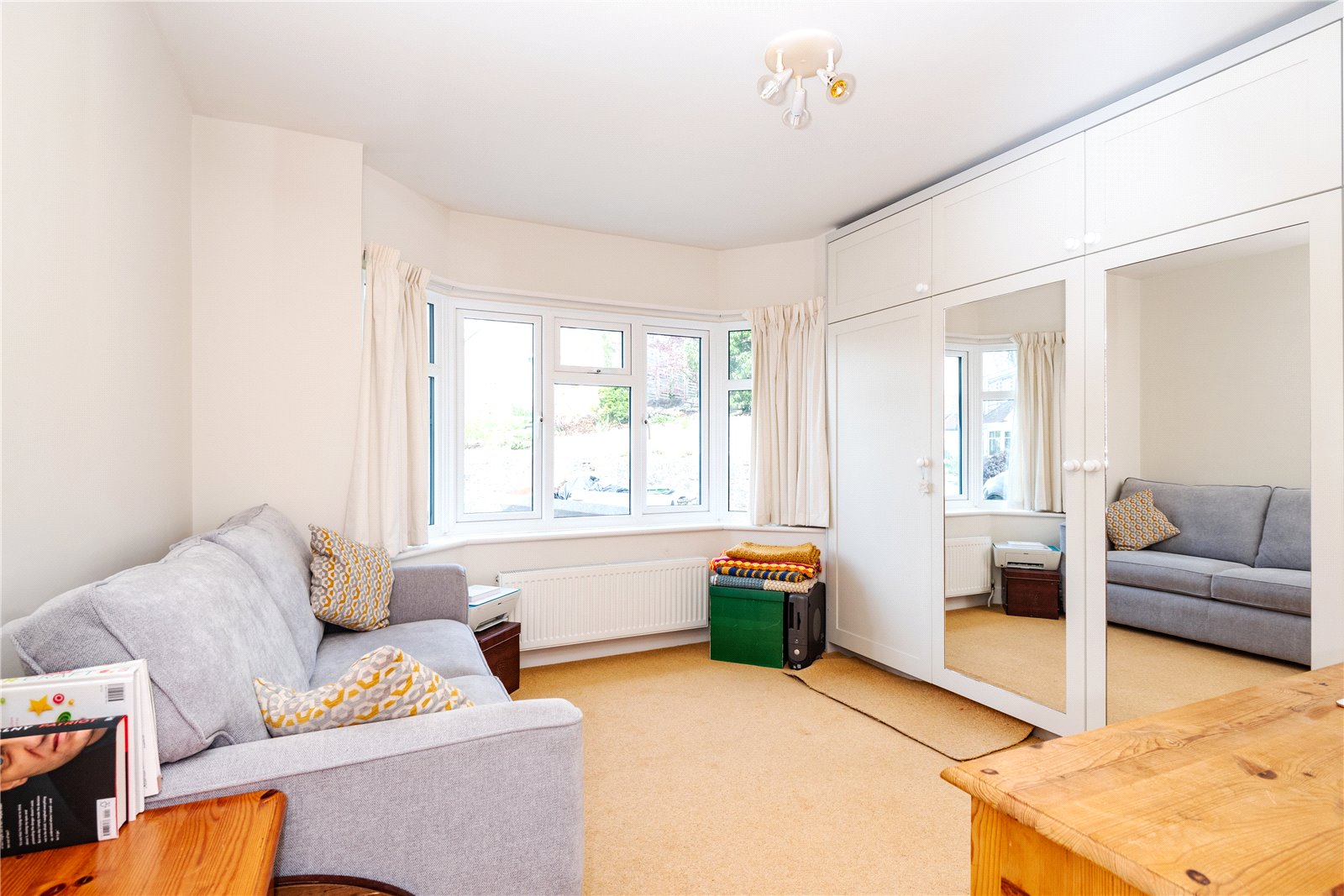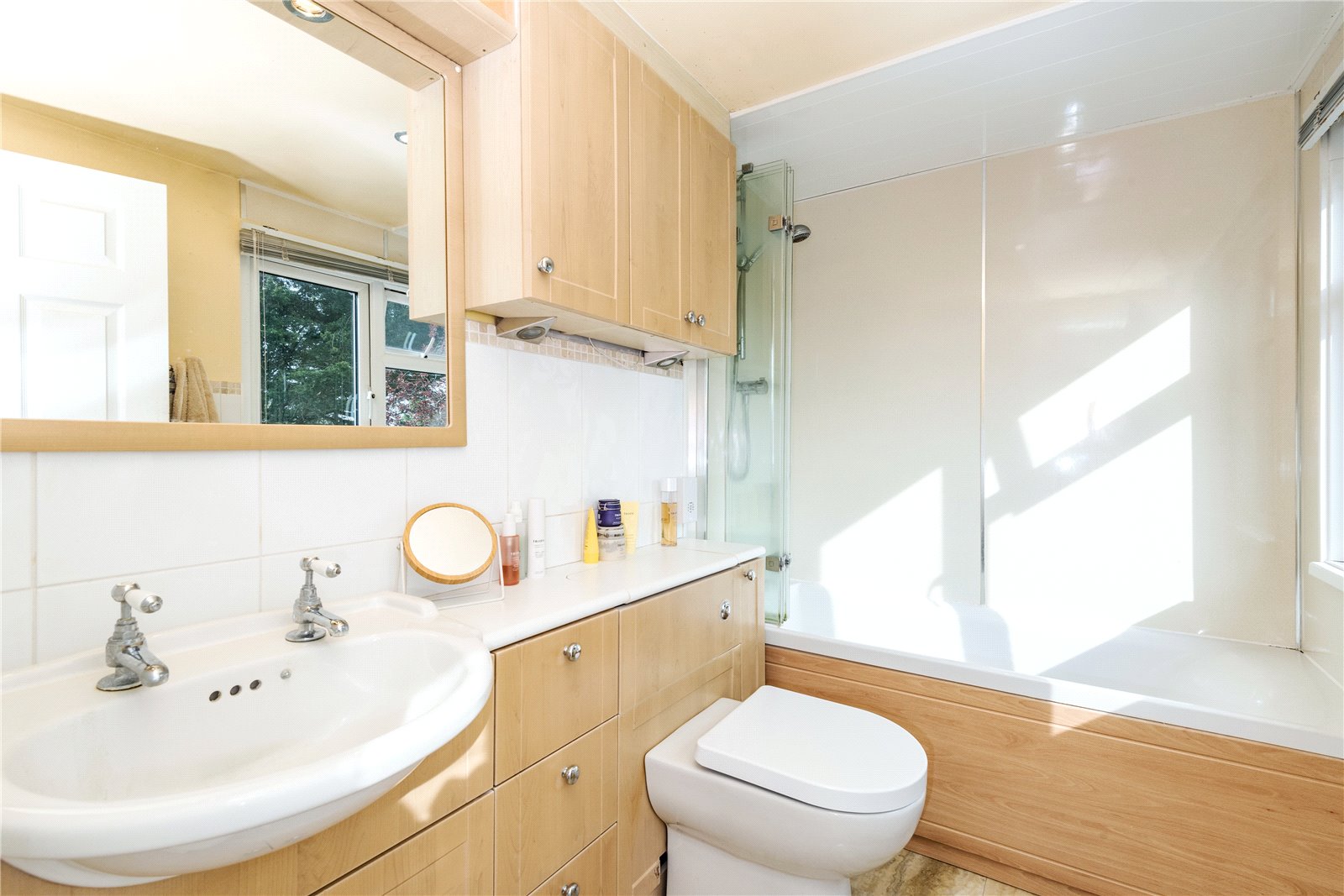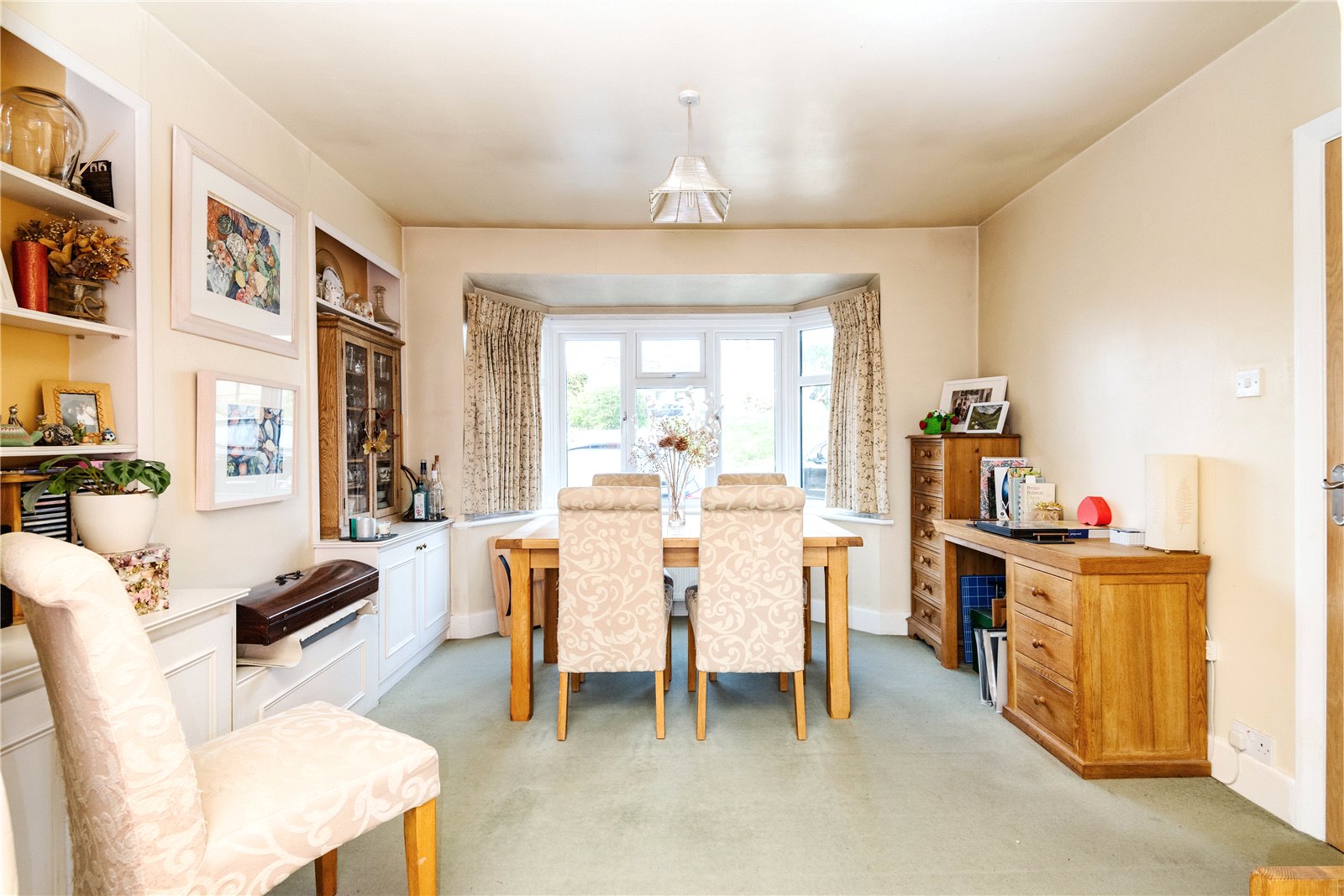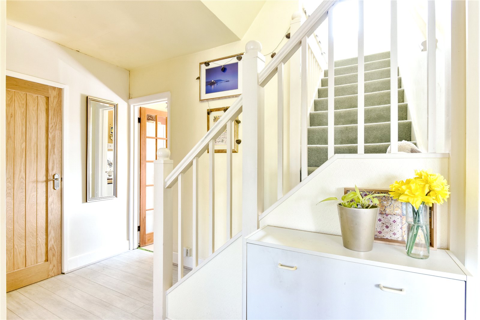 To the outside, the front garden is mainly laid as off road parking and has side access leading to the attractive south/westerly facing rear garden, with lawned and patio areas, well stocked flower beds and borders and three garden sheds.