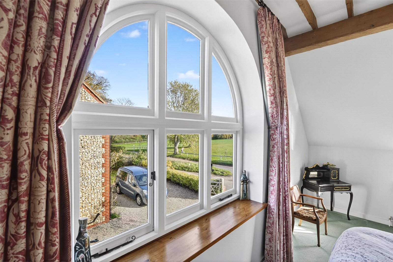 The first floor landing gives access to three/four bedrooms and shower room/WC, with bedroom one boasting a range of fitted wardrobes, a semi vaulted wood beamed ceiling, attractive arched side window and front aspect window with stunning view of Nepcote Green. There is an adjacent study/bedroom four, also with the stunning view of Nepcote Green and has an ensuite bathroom/WC with freestanding, cast iron, roll top bath. There is a further, front aspect, double bedroom with a stunning view of Nepcote Green and bedroom three to the rear, which overlooks the attractive garden and offers a view of Church Hill. A further staircase leads to the second floor, offering a further double bedroom and view of Church Hill to the rear and gives access to the two loft spaces.