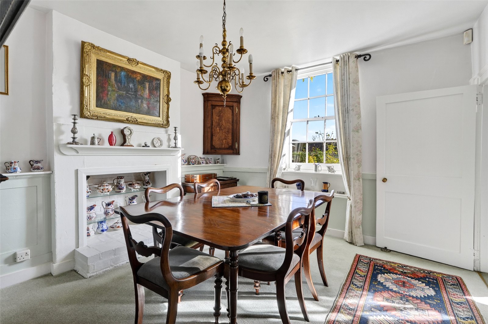 The sheltered entrance has period front door to the entrance hall, with large walk in storage cupboard and stairs to the first floor, a glazed door leads to the elegant sitting room with front aspect windows having a stunning view of Nepcote Green, attractive fireplace with fitted wood burner and French doors to a triple aspect conservatory, with doors to the rear garden. The dining room has the same stunning view of Nepcote green and leads to the kitchen/breakfast room, with work surfaces and having comprehensive range of base level and wall mounted units, fitted oven, hob and fridge, space for dishwasher, door to cellar with approximately 5ft of head room and door to the utility room, with ground floor cloakroom, door to the rear garden and internal door to the garage.