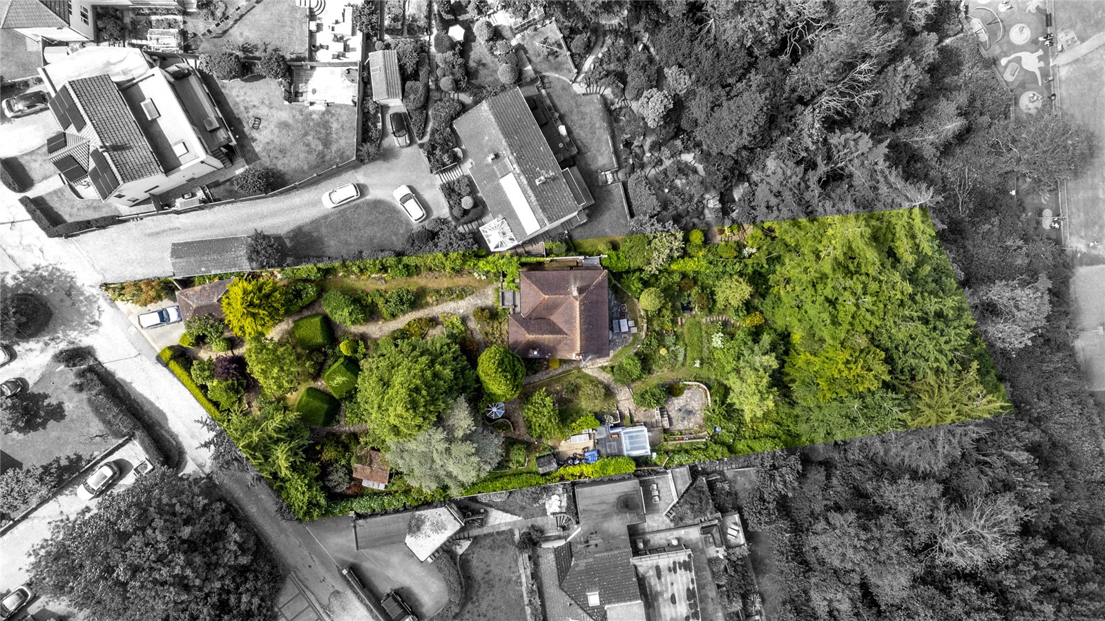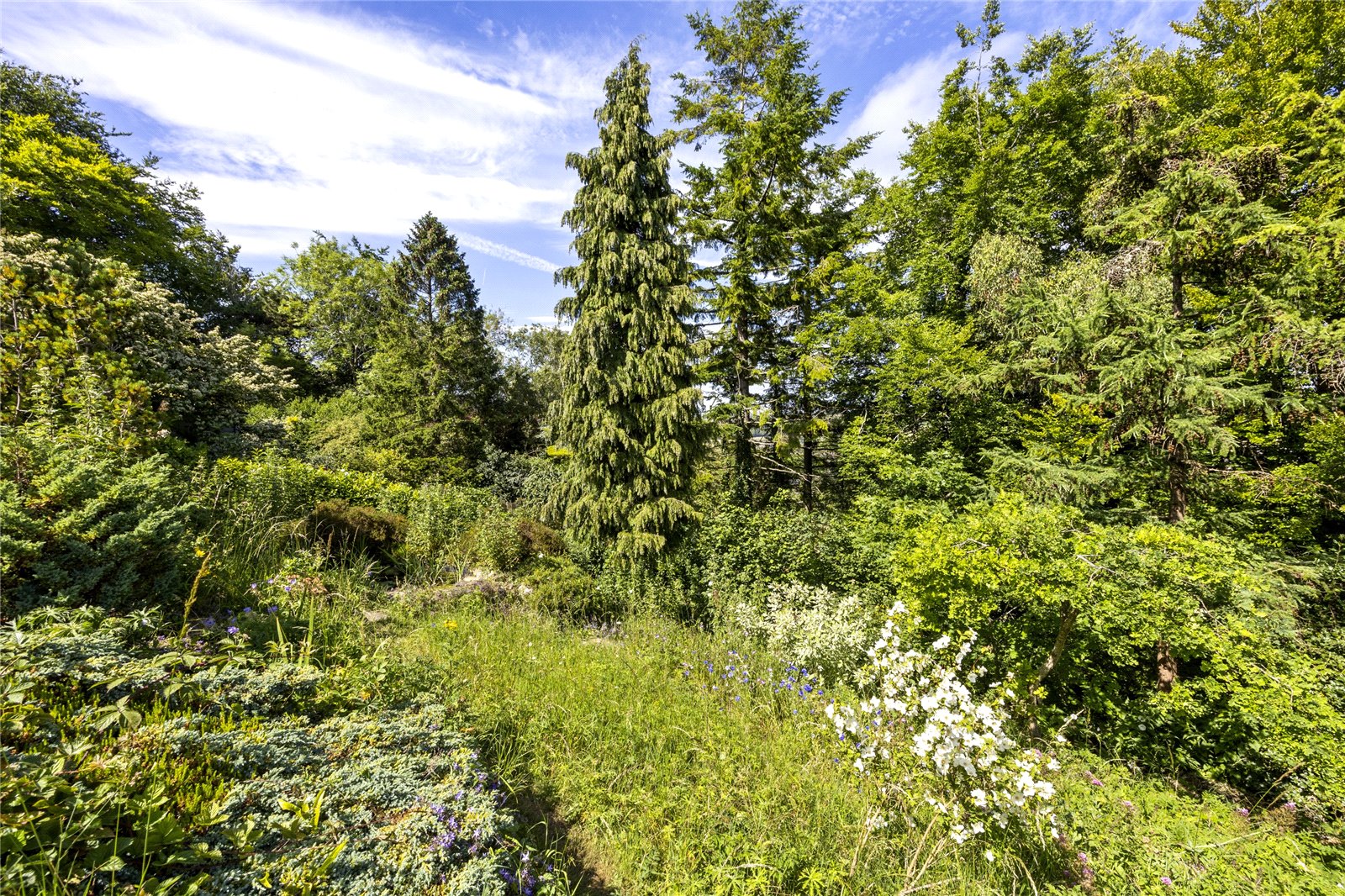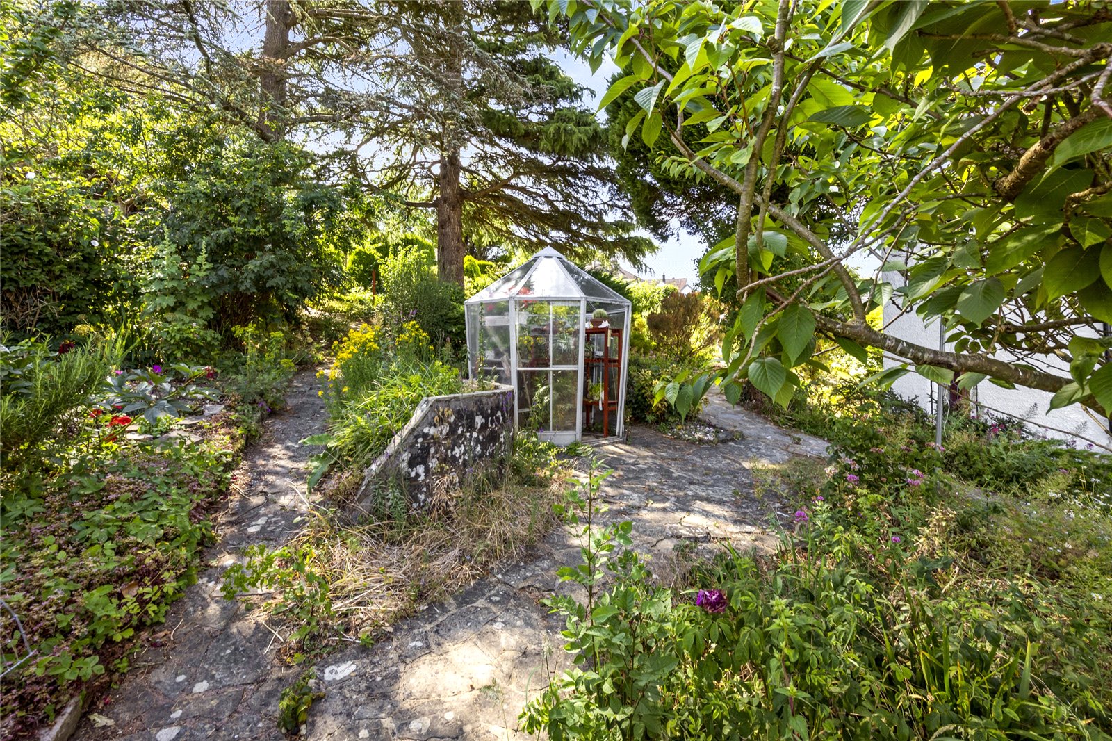 To the outside, Quernmoor boasts a generous double plot of approximately half an acre, with attractive gardens to the front and rear, private driveway with off road parking and a good sized single garage to the front. The front garden has interconnecting pathways with mature and well stocked flower beds and borders, patio and pavilion style seating area, brick store adjacent to the northern elevation, further gardens to the southern side elevation along with a greenhouse/potting shed and workshop. The rear garden has two paved terraces, various, well stocked flower beds and borders and a pathway leading down the majority of the way to the property’s boundary, adjacent to The Gallops.