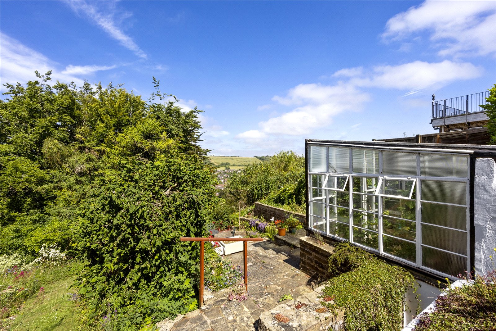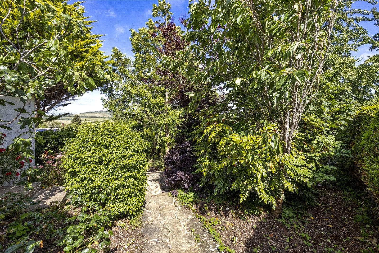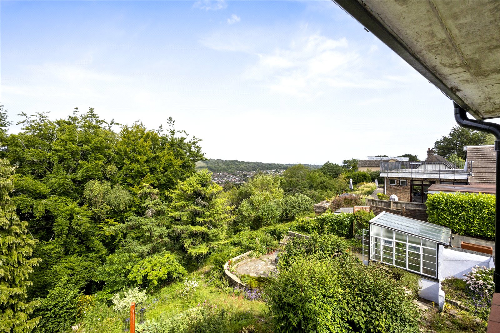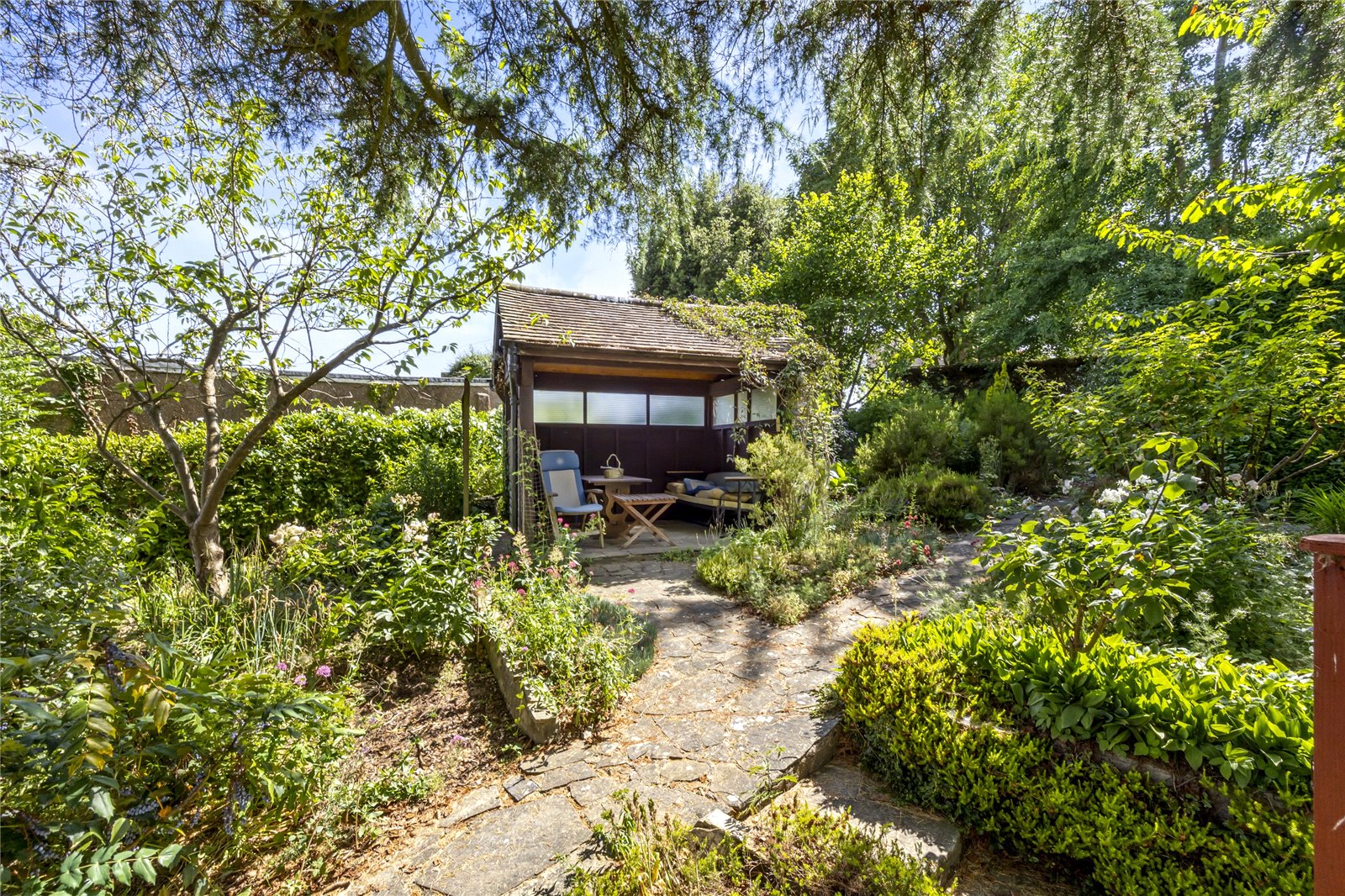 To the outside, Quernmoor boasts a generous double plot of approximately half an acre, with attractive gardens to the front and rear, private driveway with off road parking and a good sized single garage to the front. The front garden has interconnecting pathways with mature and well stocked flower beds and borders, patio and pavilion style seating area, brick store adjacent to the northern elevation, further gardens to the southern side elevation along with a greenhouse/potting shed and workshop. The rear garden has two paved terraces, various, well stocked flower beds and borders and a pathway leading down the majority of the way to the property’s boundary, adjacent to The Gallops.