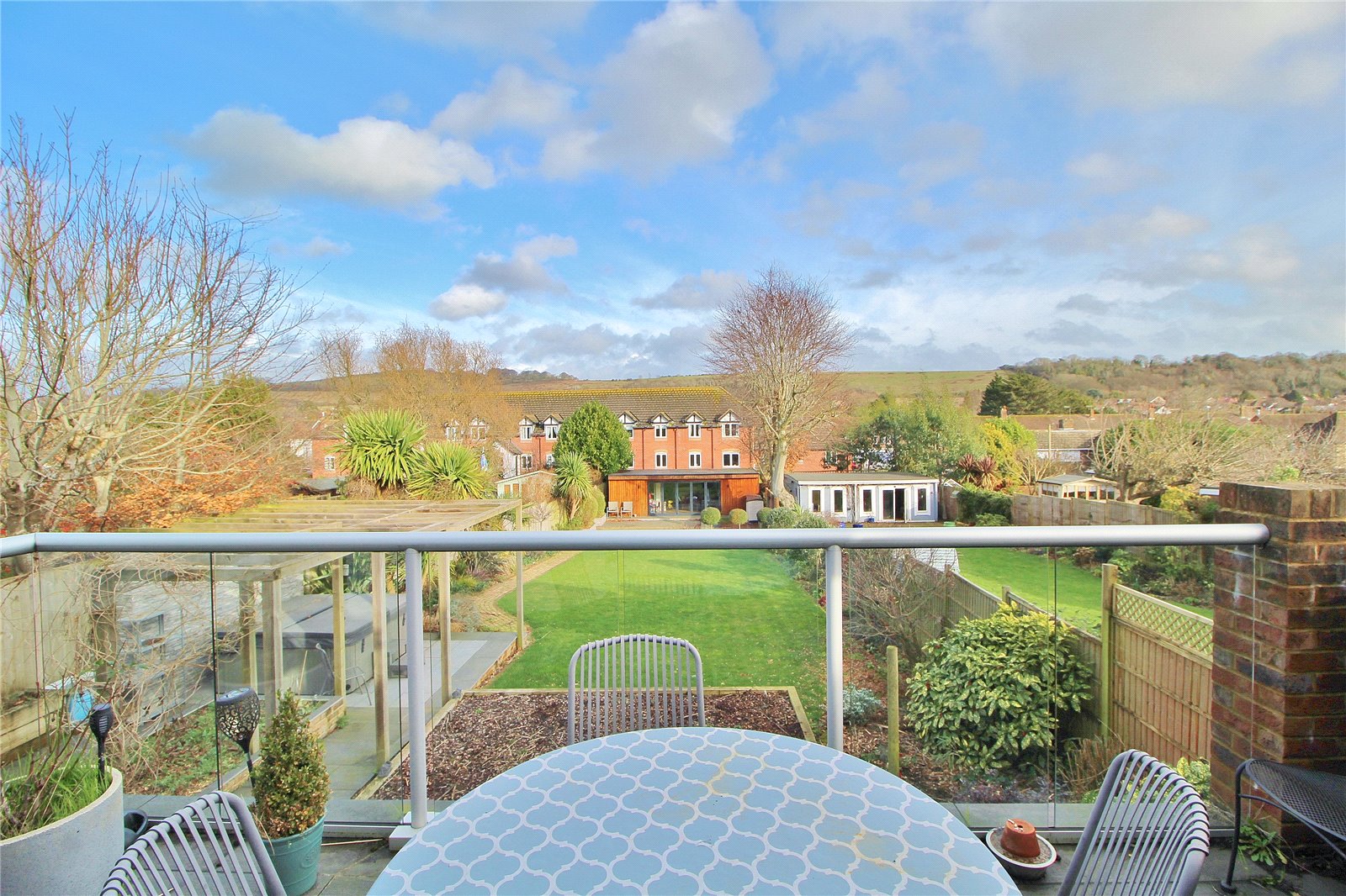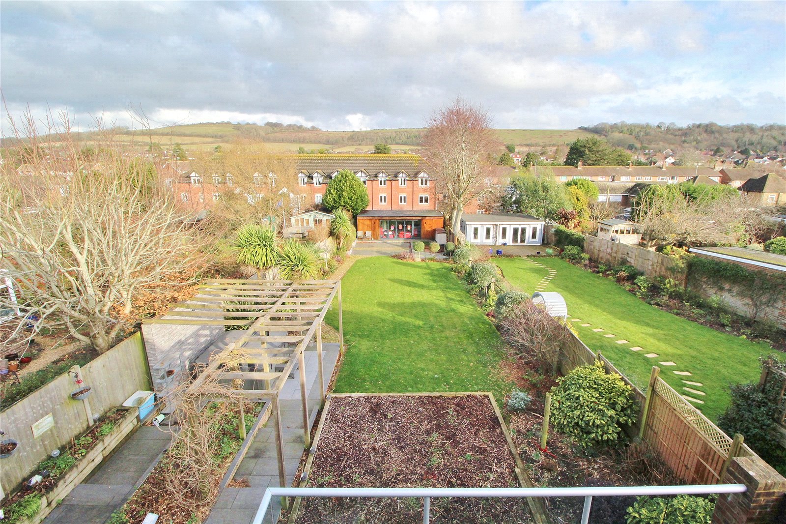 To the first floor there are two further bedrooms, with bedroom one offering a range of wardrobe storage and double doors with Juliet balcony, also offering the stunning view of Cissbury Ring and adjoining downland. In addition, the first floor offers a modern shower room/WC.