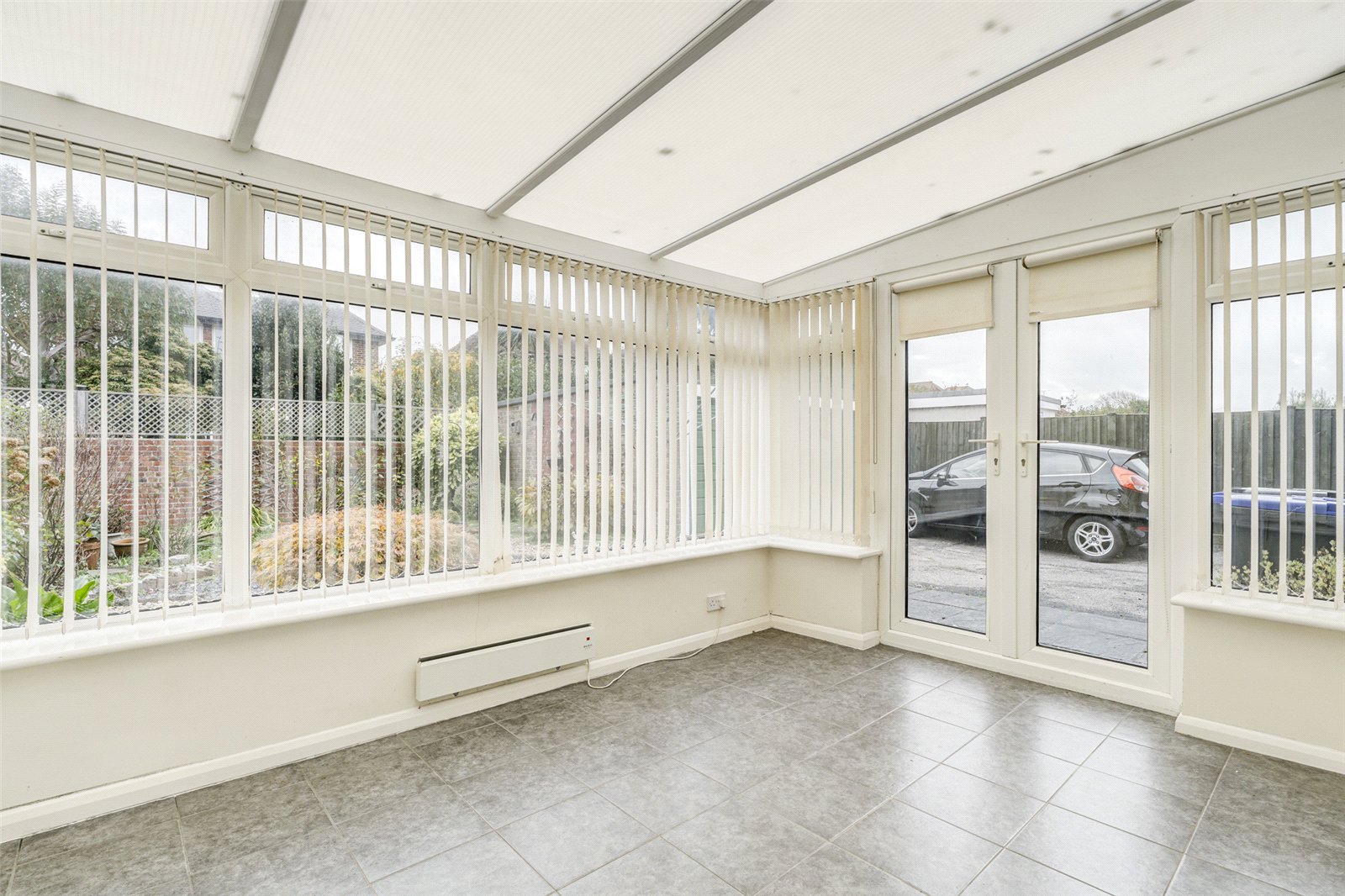 There is a large living/dining room with an electric feature fireplace and french doors to a good size conservatory which provides views of the gardens and access to the private rear garden. The modern fitted kitchen is adjacent with additonal rear access and is equipped with a variety of cupboard space, worktop surfaces, breakfast bar, one and half bowl sink, tiled splashbacks, electric oven and hob, extractor fan and space for further kitchen appliances.