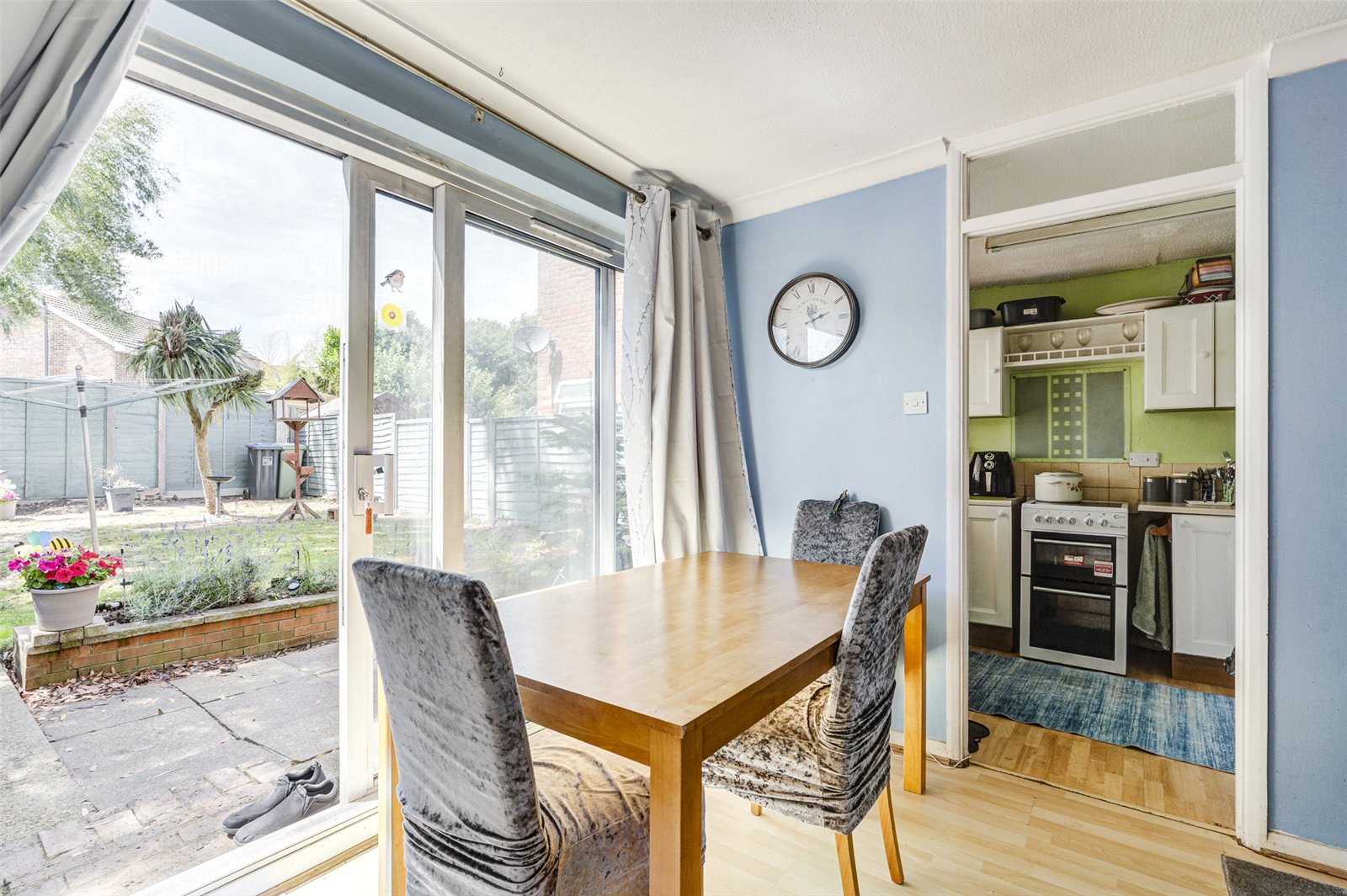 The property is entered via a double glazed front door which leads into an entrance hallway having a storage cupboard, internal door into the garage, stairs to the first floor and a further glazed door which leads into the lounge/dining room. This is a good size room having two radiators, understairs storage and sliding patio doors to the rear garden. You can also access the kitchen from the dining area which has a good range of work tops with cupboards below, eye level wall cupboards, plumbing for a washing machine, space for a cooker, fridge freezer and double glazed window.