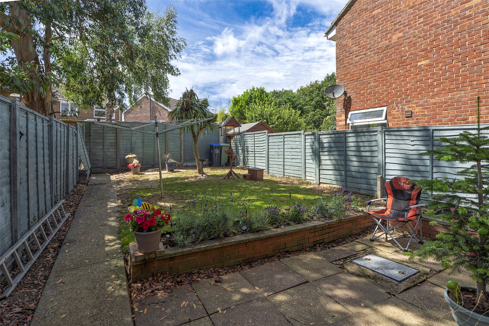 Outside to the rear is a West facing rear garden with a full width patio area with a raised brick border and pathway that leads to an area of lawn. Side access leads to the front where you will find a block paved driveway providing off street car parking and access to the garage via an up and over door with power and light, which also has an inner door leading into the entrance hallway of the house.