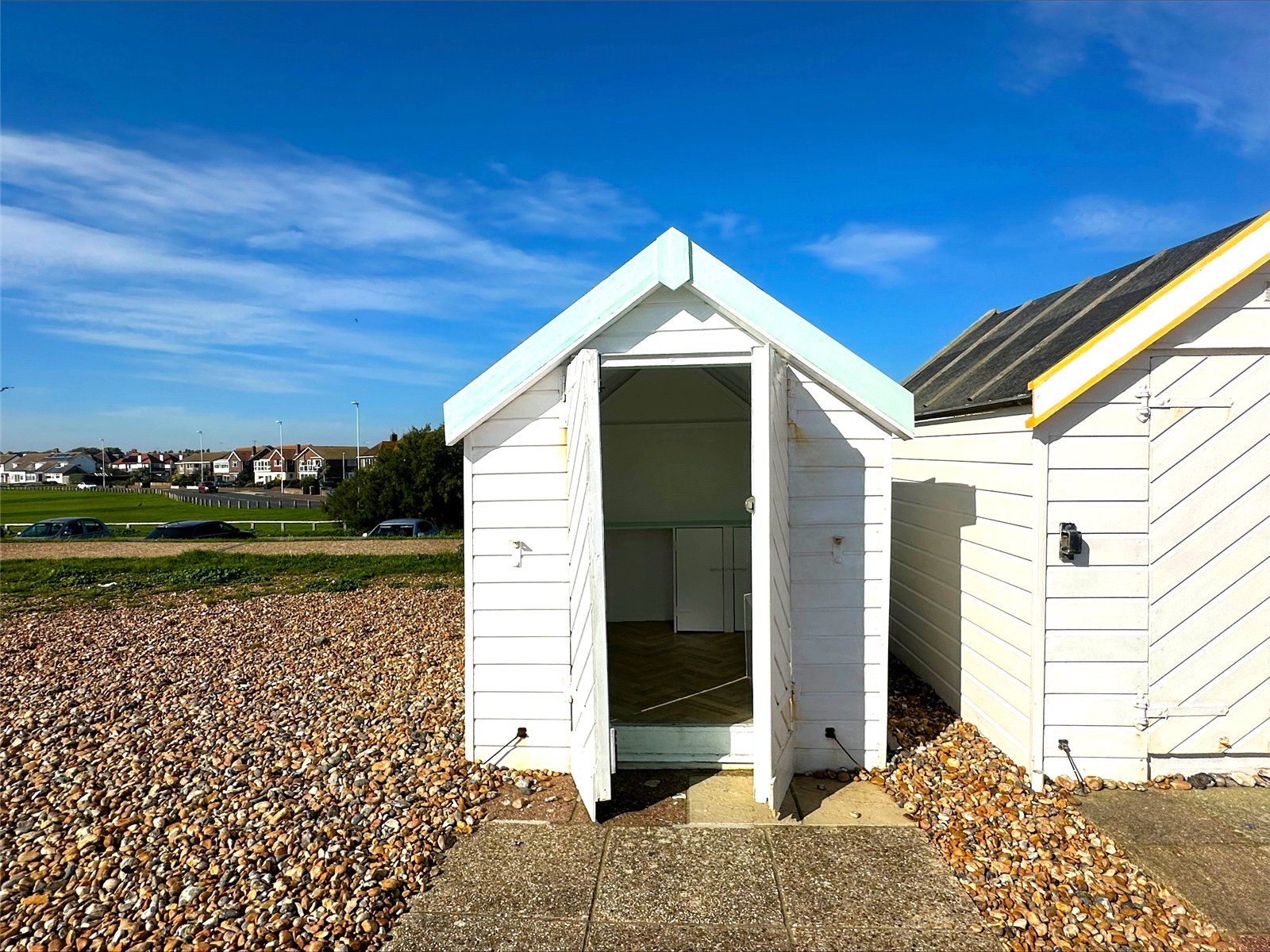 Michael Jones are delighted to offer for sale this superbly positioned 'end of line' Beach Hut, situated directly on Goring Seafront between the ever-popular Sea Lane Café and Worthing Sailing Club opposite the public car park. The immediate area has unrestricted street parking as well as a public car park and toilets within a short distance.
