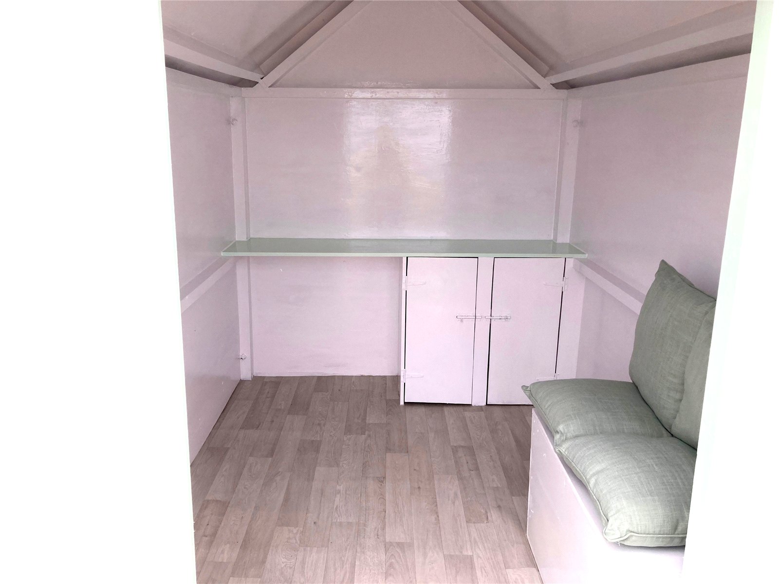 The hut measures 8'00 x 6'00, so generous in size and provides storage for tables, chairs, parasols, plates, cups, outdoor games and a variety of many other items. The double doors can be latched open to take in the glorious direct view of the sea. Externally there is a southerly patio area to enjoy the wonderful views.