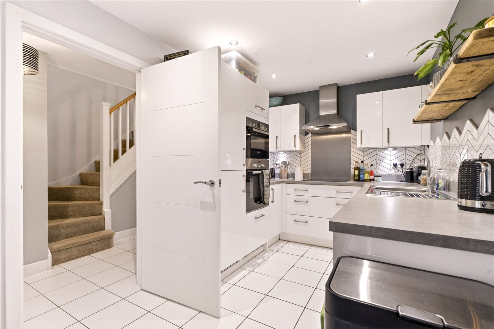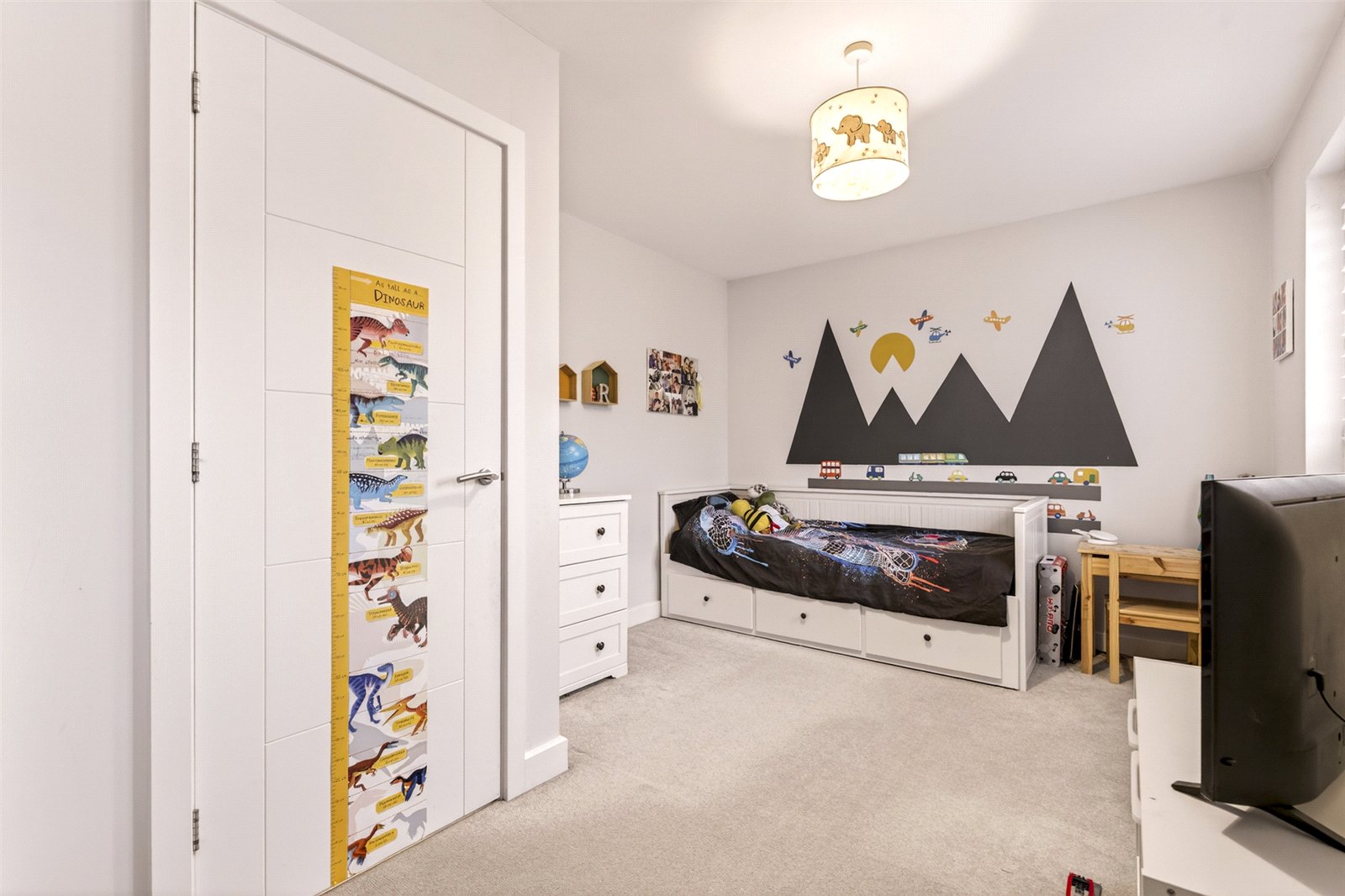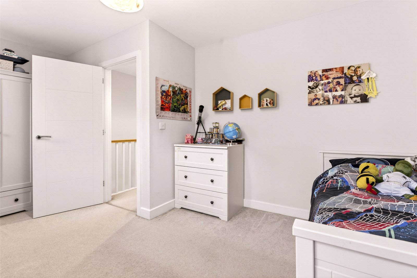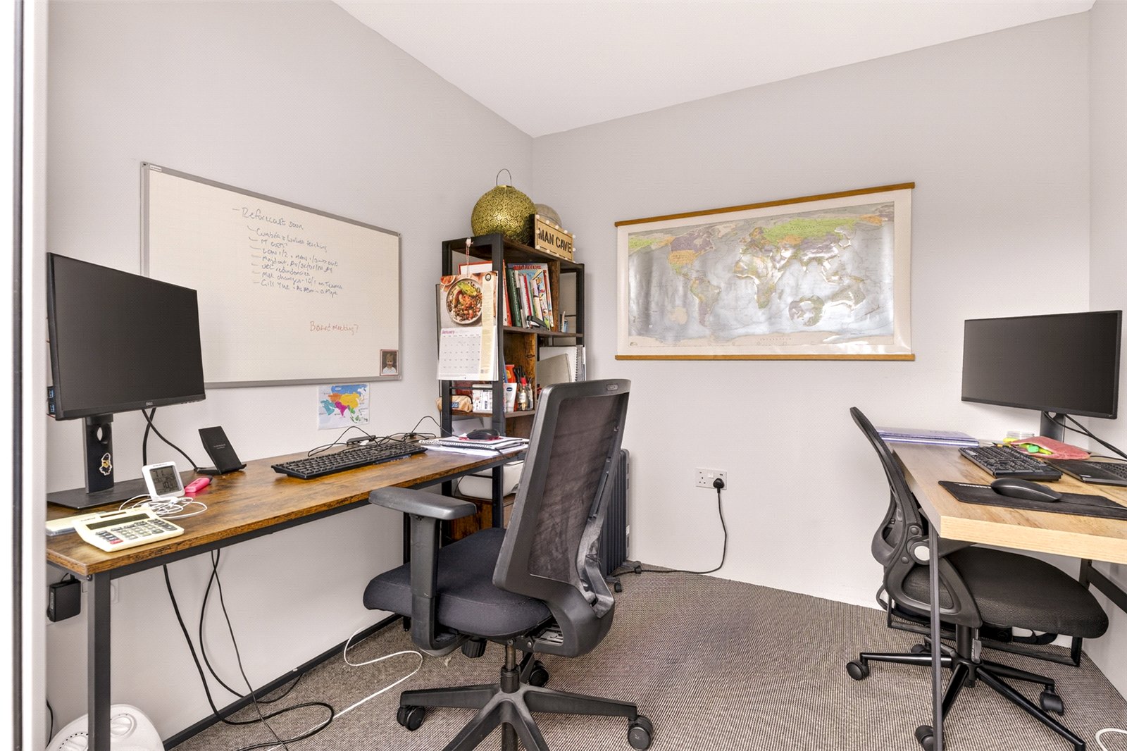 The South facing rear garden which is partly laid to lawn has a good size Lshaped patio area, raised wooden flower/shrub border, full width border to the rear with a range of screening trees, access to the rear of the garage, as well as a fully equipped 8' x 8' cabin with power, light and wifi/broadband. There is also outside lighting and a side access which leads to the front where you will find two visitors car parking spaces along with private off street car parking which leads to the front of the garage.