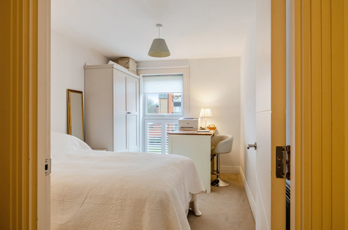 The apartment has two double bedrooms, the prinicpal having the added benefit of built-in wardrobes with a modern, family bathroom.