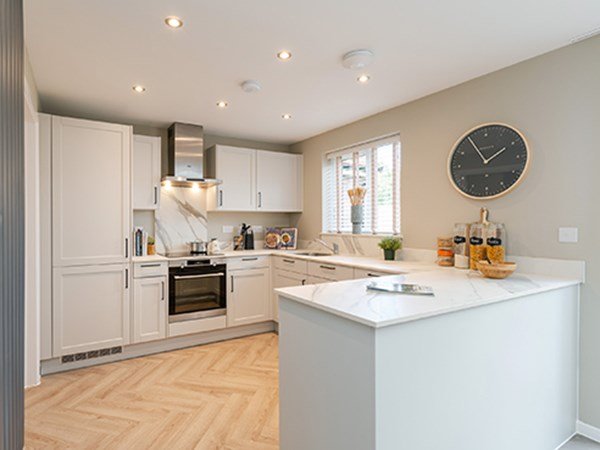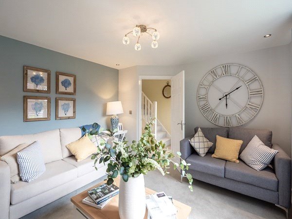 an open plan kitchen/dining room with French doors leading into the garden, a handy utility room, a front-aspect living room, plus under-stairs storage and a guest cloakroom.