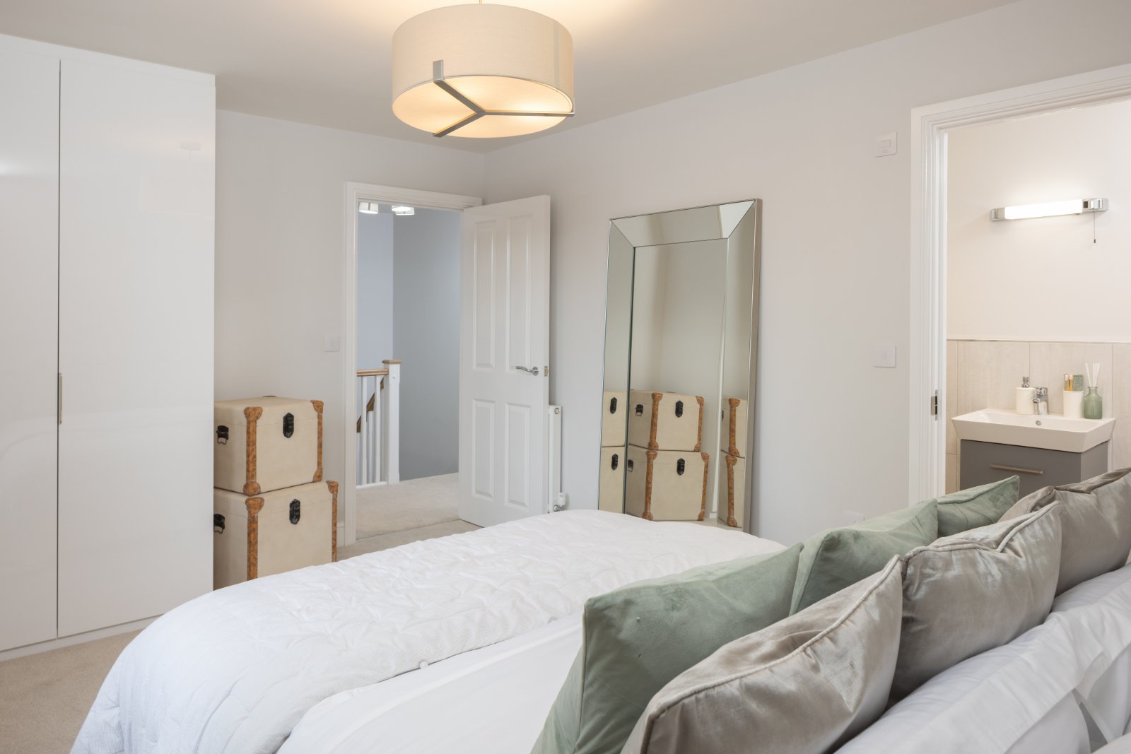 Two additional bedrooms are served by a stylish family bathroom, all accessible from a central landing. Smart design ensures each room is filled with natural light and optimized for everyday living
