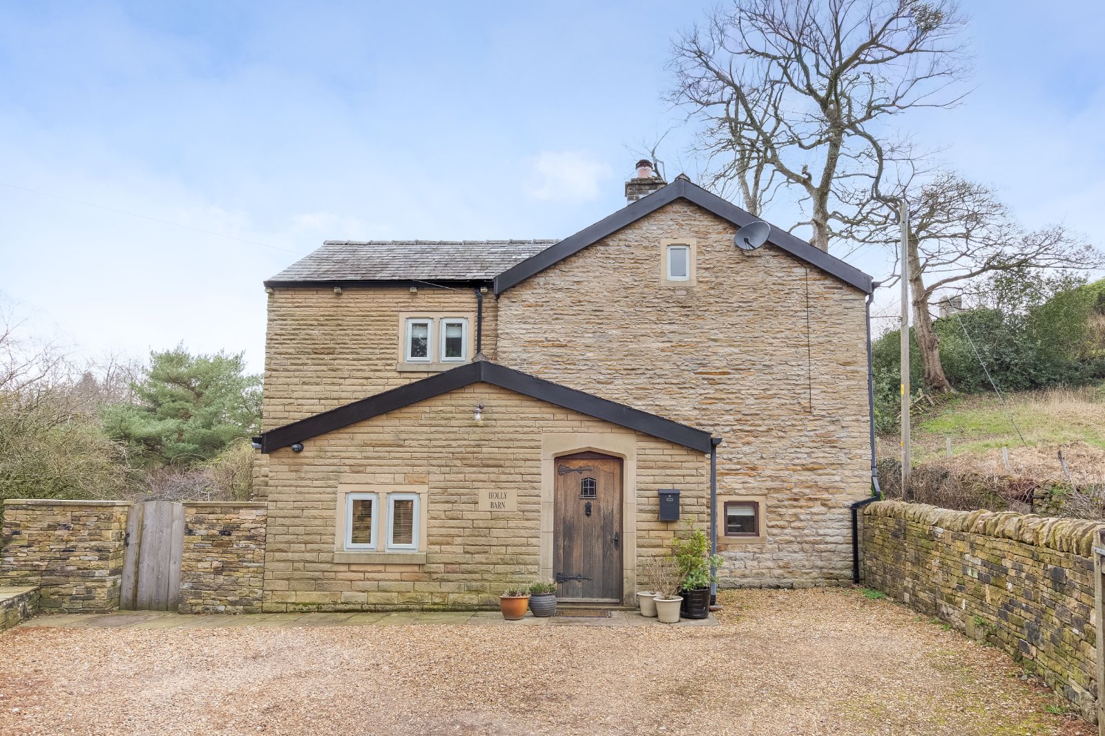 A truly exceptional detached barn conversion, meticulously redesigned by the current owner to a high specification, and set within the highly sought-after semi-rural enclave of Mill Brow. This unique home seamlessly blends bespoke contemporary design with an array of retained and restored original features, creating a residence of both character and refined modern living.