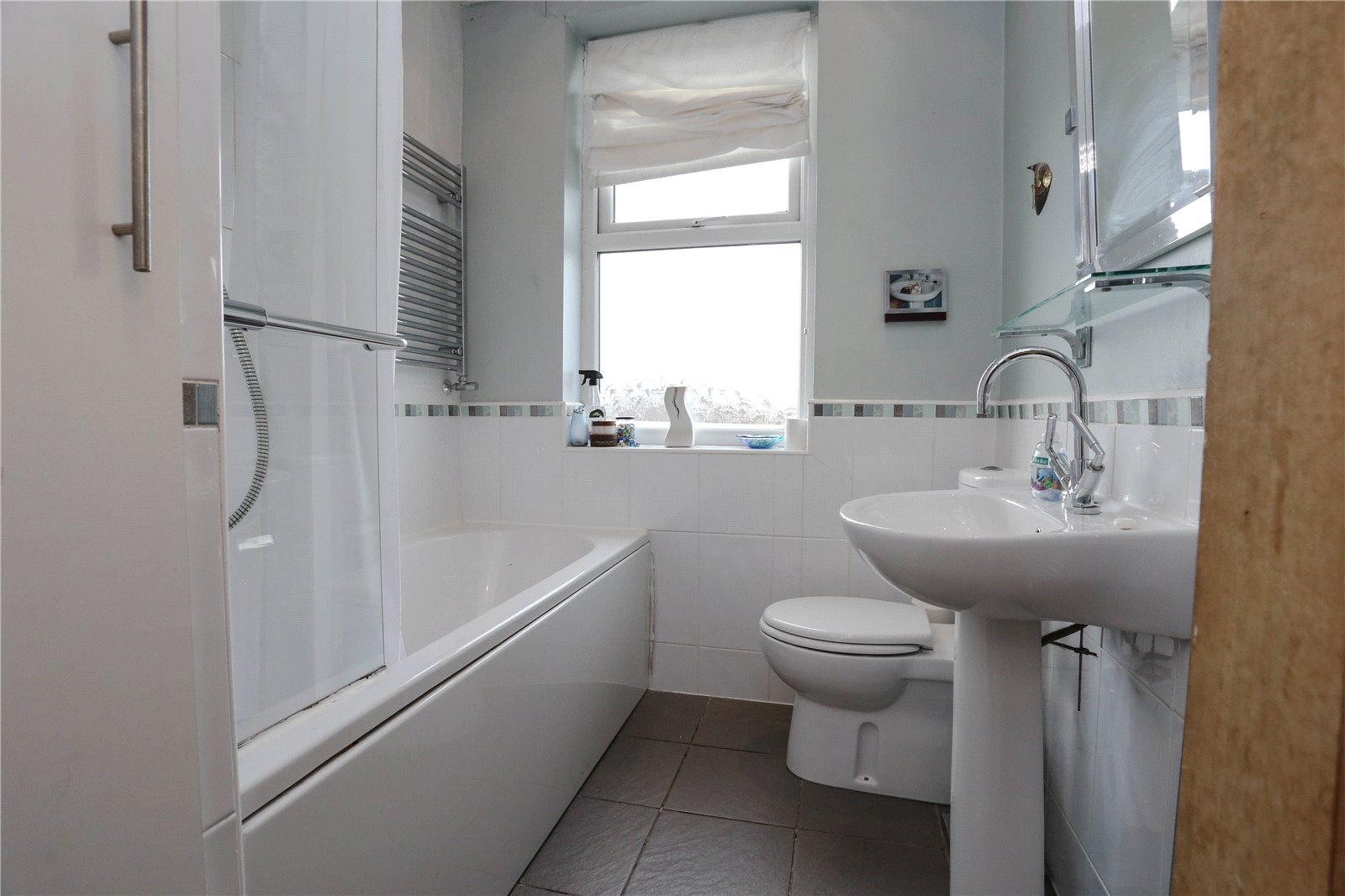 The first floor continues to impress with well-proportioned accommodation. There are three comfortable double bedrooms, each offering ample space for furnishings, alongside a fourth bedroom that would make an ideal child’s room, nursery, dressing room or home office depending on a buyer’s needs. The bedrooms are served by a modern family bathroom fitted with a white three-piece suite, providing a clean and contemporary finish.