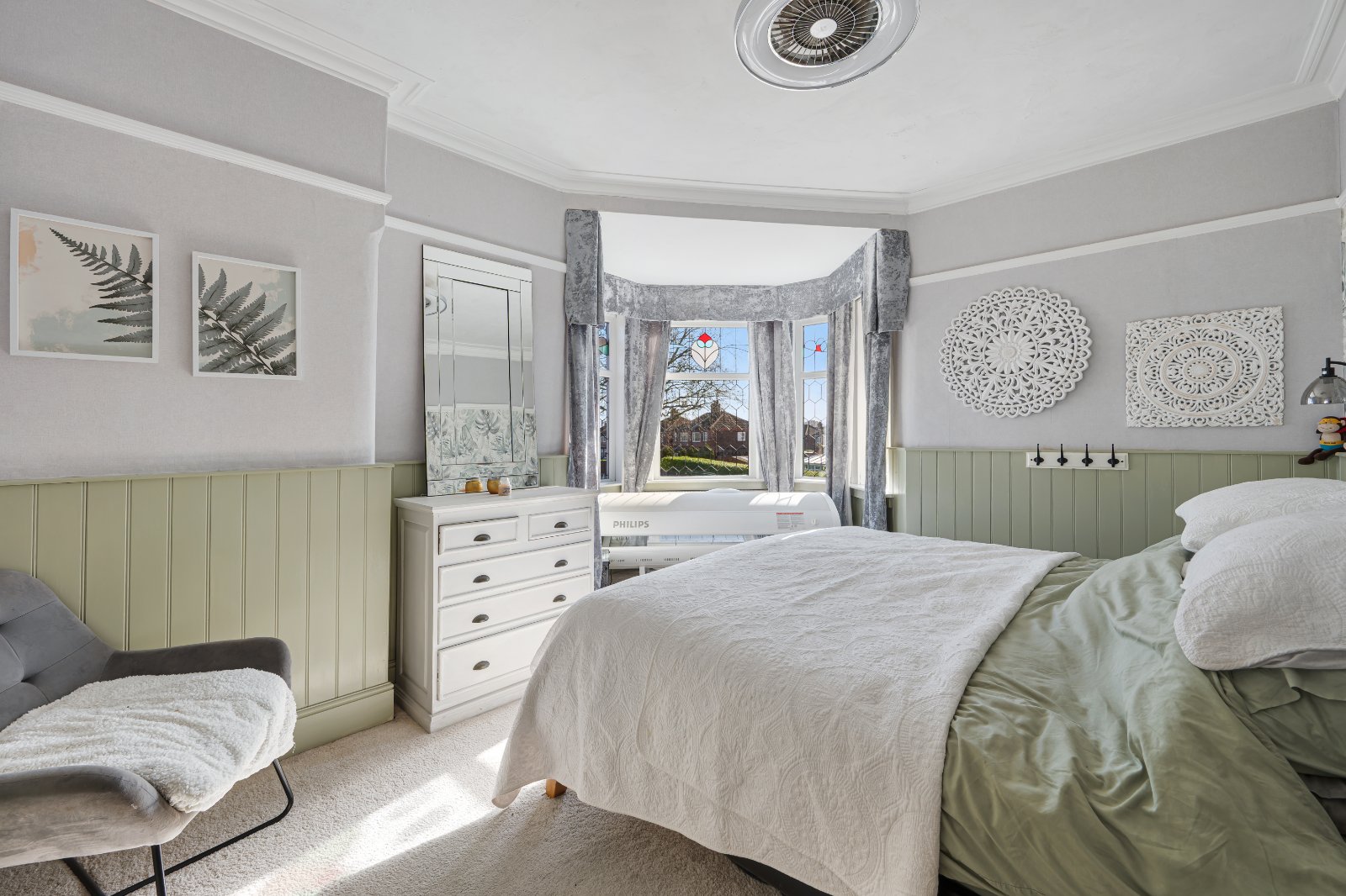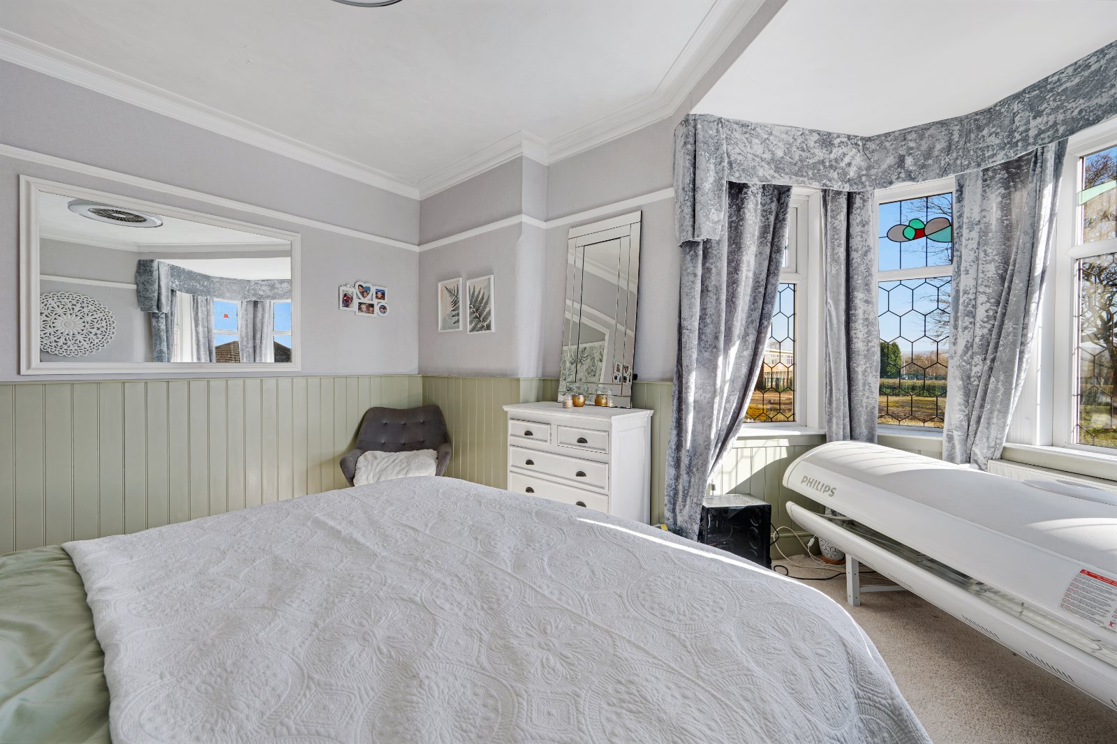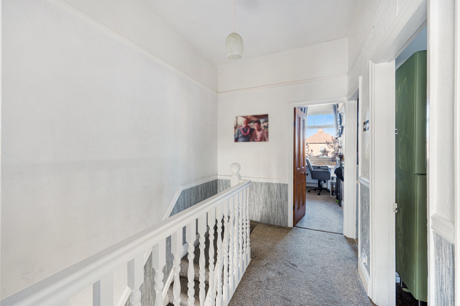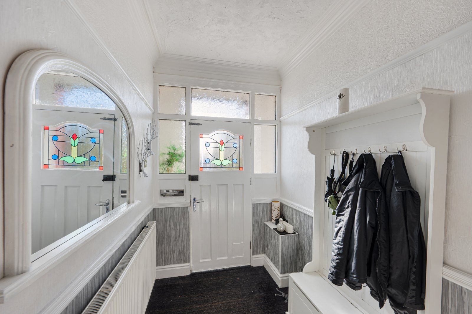 The spacious, bay fronted lounge offers abundant natural light and a charming log burner fireplace, perfect for cozy evenings. Beyond the lounge, is the large open conservatory providing additional living space and features french doors opening onto a private, low maintenance garden, ideal for relaxing or entertaining. The ground floor also benefits from a convenient downstairs WC and a separate laundry room, both offering ample storage.