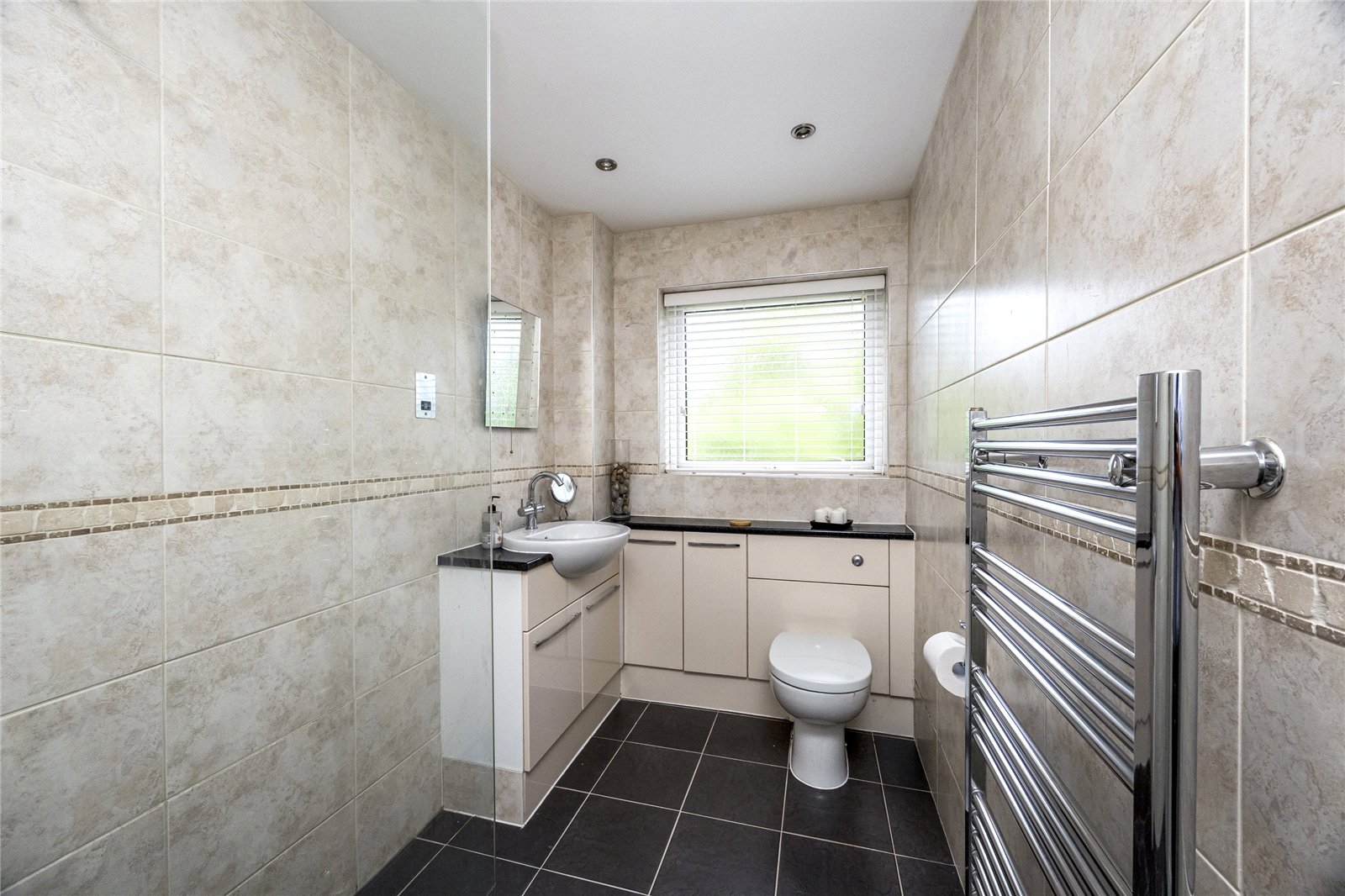 The accommodation includes four well-proportioned bedrooms, providing plenty of space for family, guests, or flexible use. The master bedroom was previously equipped with an ensuite bathroom, offering scope for personalisation or restoration. A stylish family shower room with WC serves the remaining bedrooms, while an additional study or office offers the perfect solution for working from home or pursuing hobbies in a quiet setting.