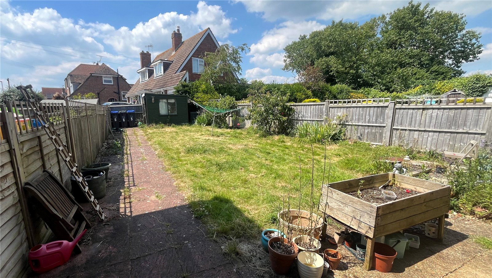 The bay fronted living room is bright and airy, featuring a charming bay window that adds character and natural light to the space. The apartment also boasts a west-facing rear garden, perfect for enjoying the afternoon and evening sun. Additionally, the property includes a private garage, offering secure and convenient parking.