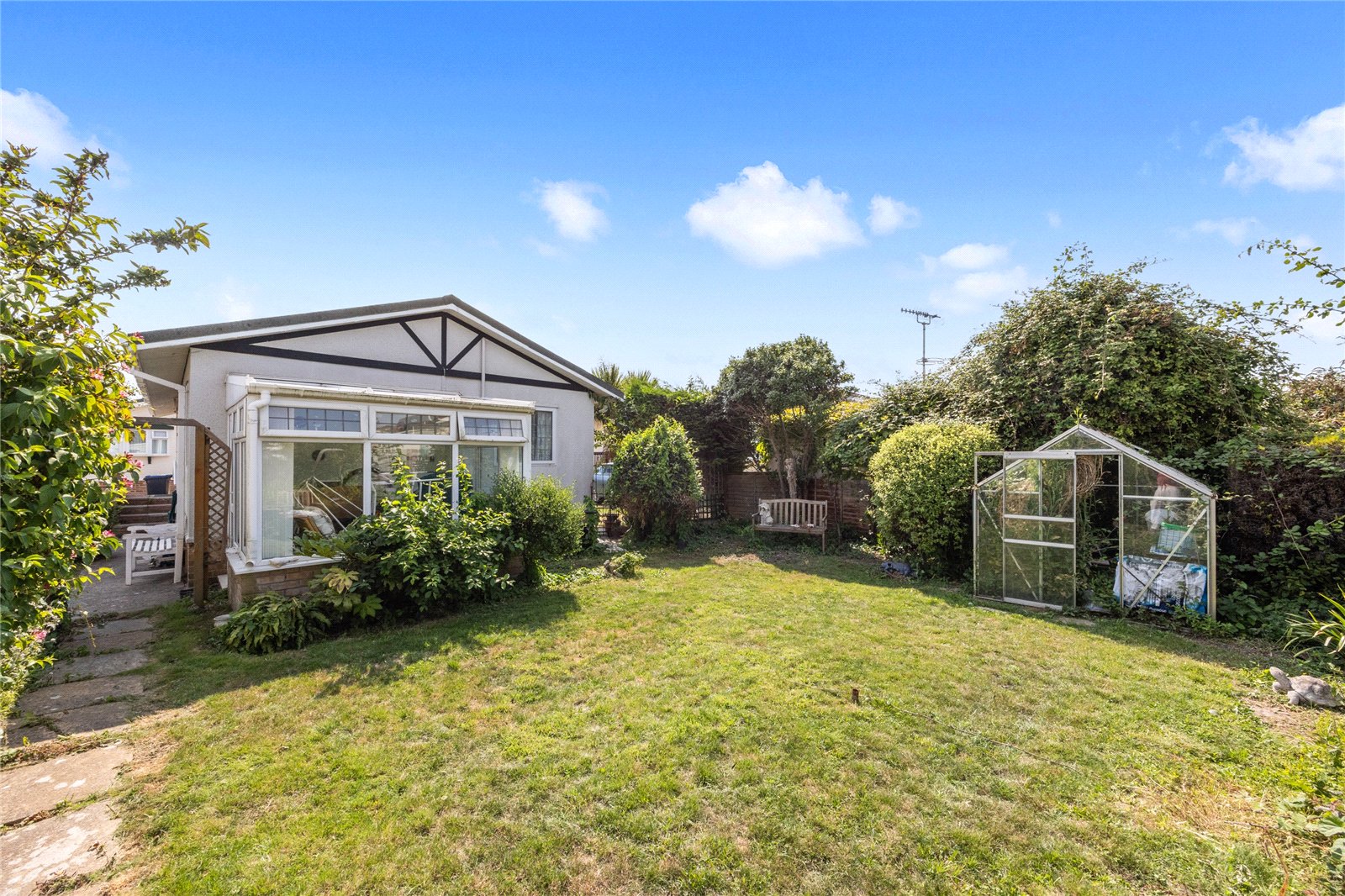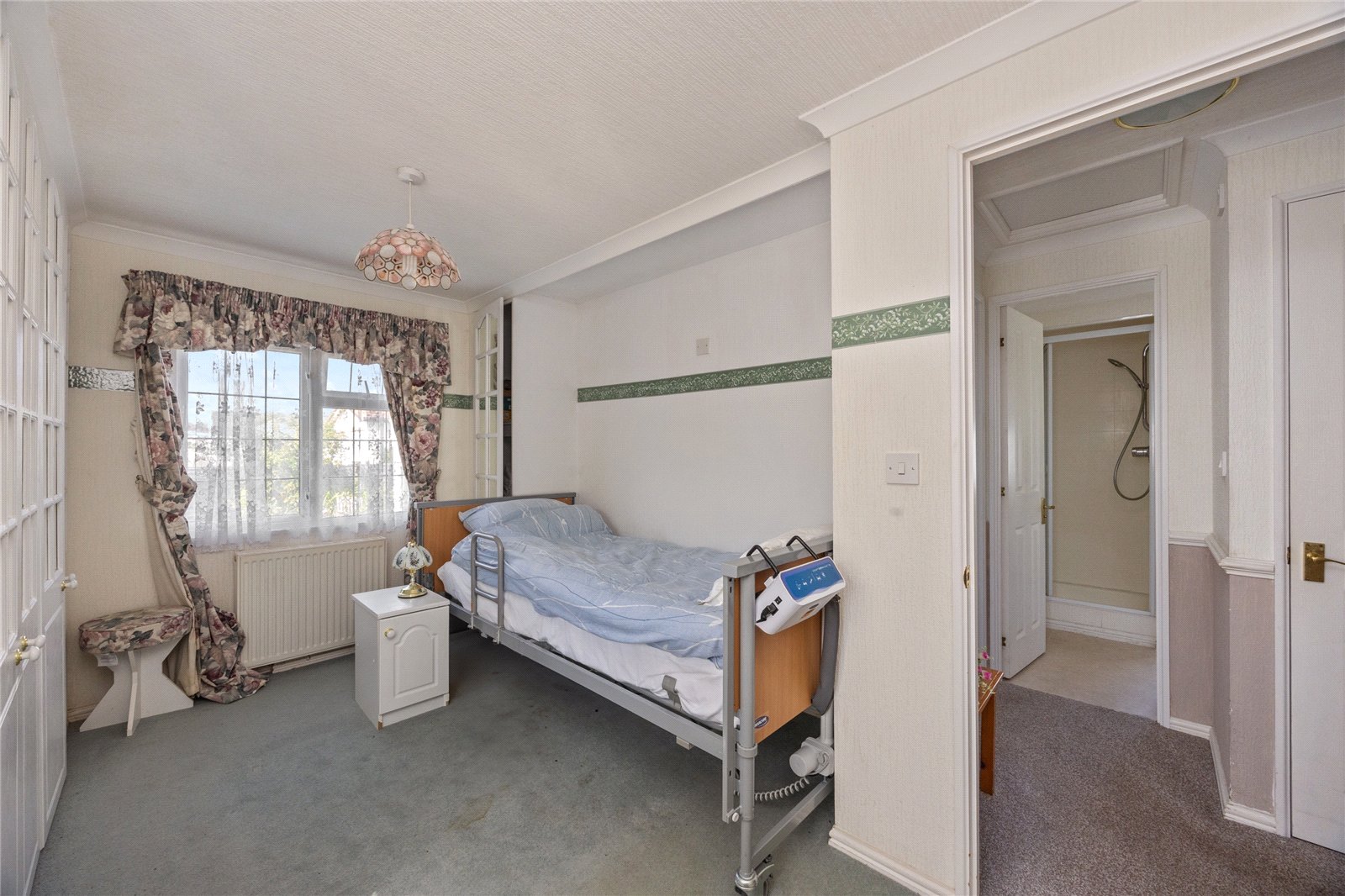 The master bedroom benefits from a private en suite, while a separate shower room caters to both family and visiting guests. Each room is designed with space and ease of use in mind, ensuring accessibility and comfort for everyday living. The property also includes ample storage solutions, with a brick-built storage shed offering additional practicality.
