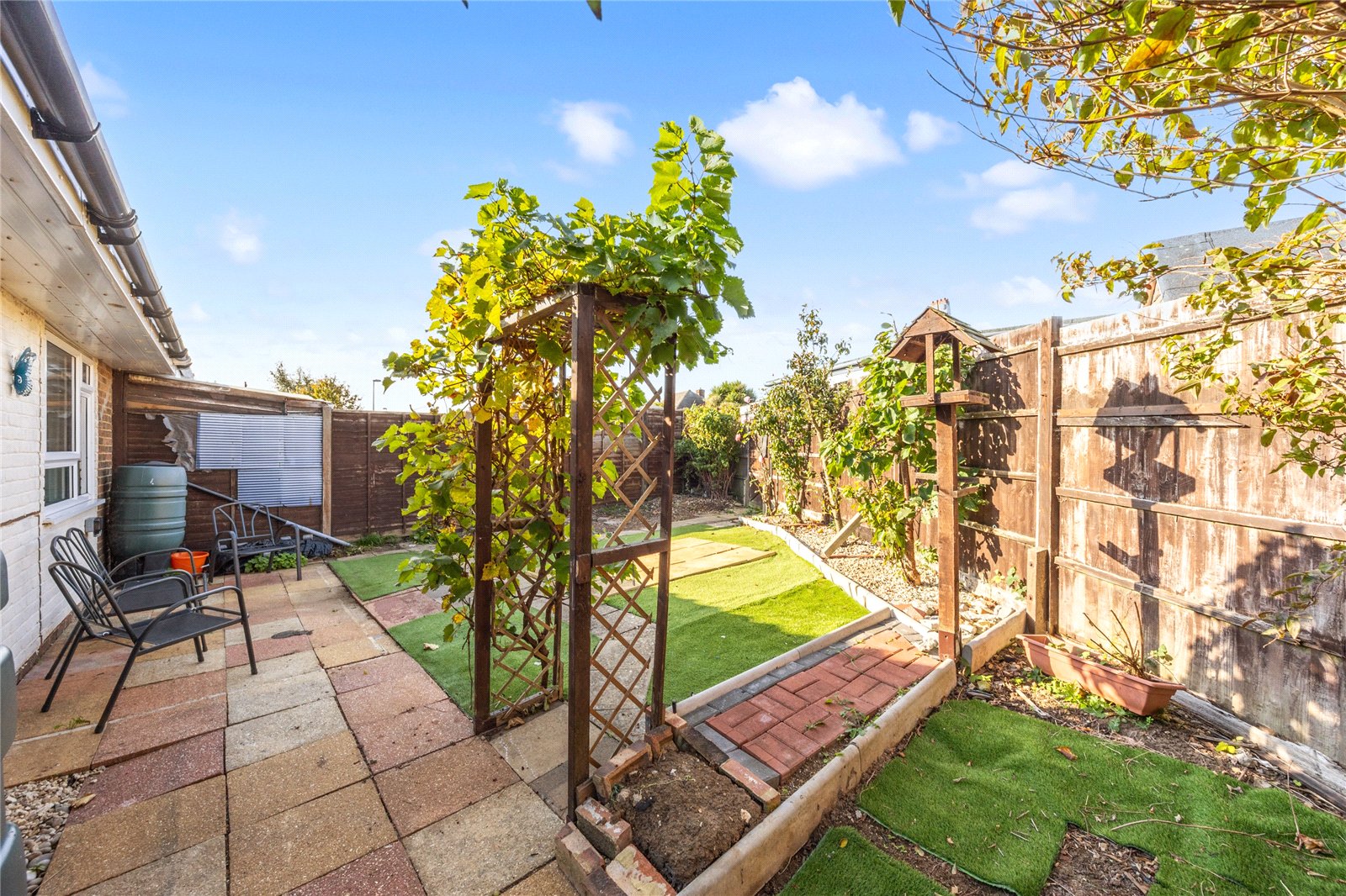 Externally, the home enjoys a substantial wrap-around garden with dual aspects, including a westerly facing side, ideal for gardening and entertaining. The westerly rear garden provides a lovely private space to relax and enjoy the afternoon sun. A garage with direct access via the garden offers additional storage or parking options, adding to the overall convenience of the property. Offered for sale with no ongoing chain, this bungalow provides a rare opportunity to secure a home in one of the area’s most sought-after settings.