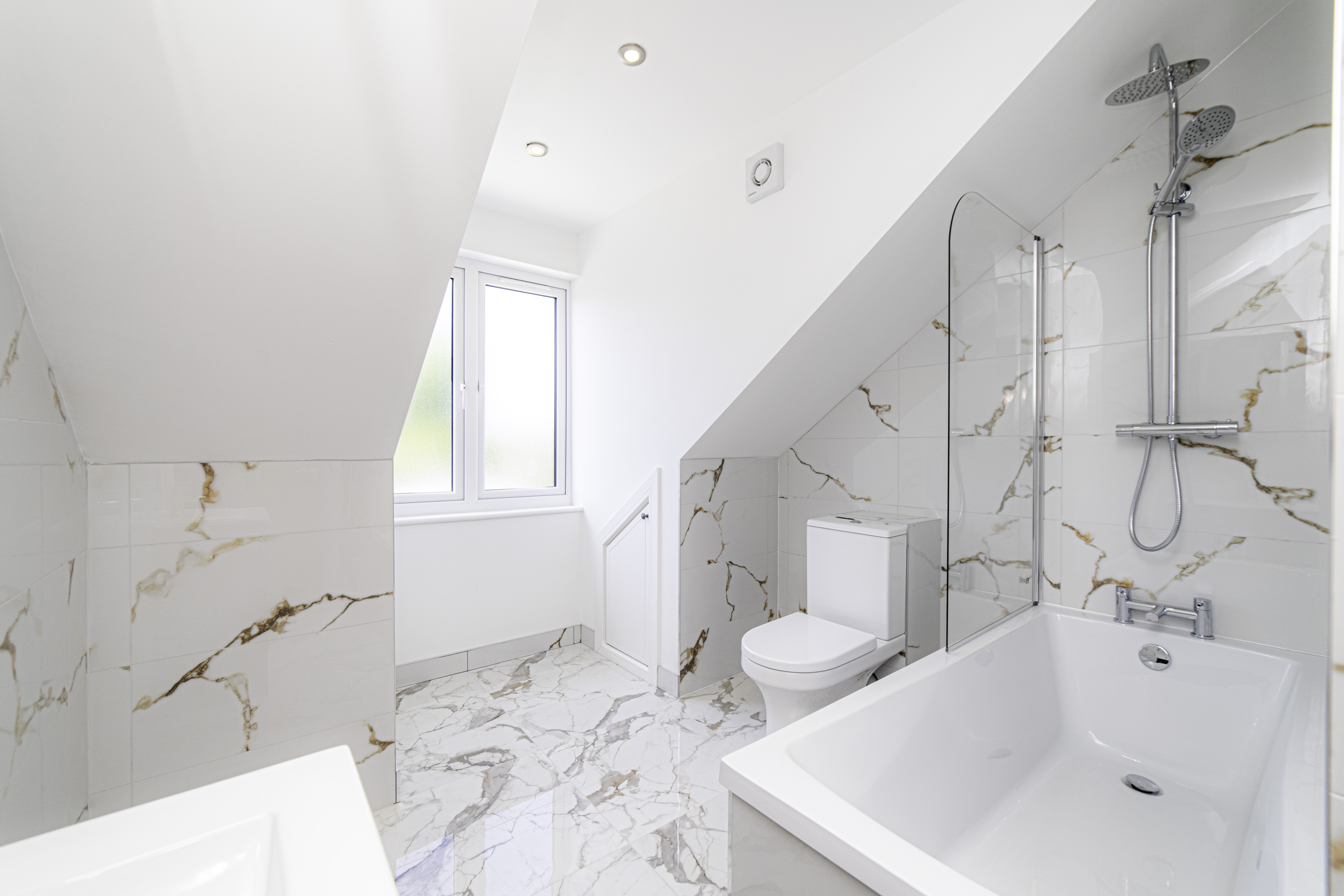 Through the front door you walk into the entrance hall. On your right you have the study and downstairs w/c and to your left you enter into the kitchen which leads on through to the generously-sized living and dining area. The ground floor is free-flowing as you can also access the living area from the entrance hall and reach the kitchen this way as well. To the first floor you have three bedrooms; one with ensuite shower room and the main family bathroom as well.