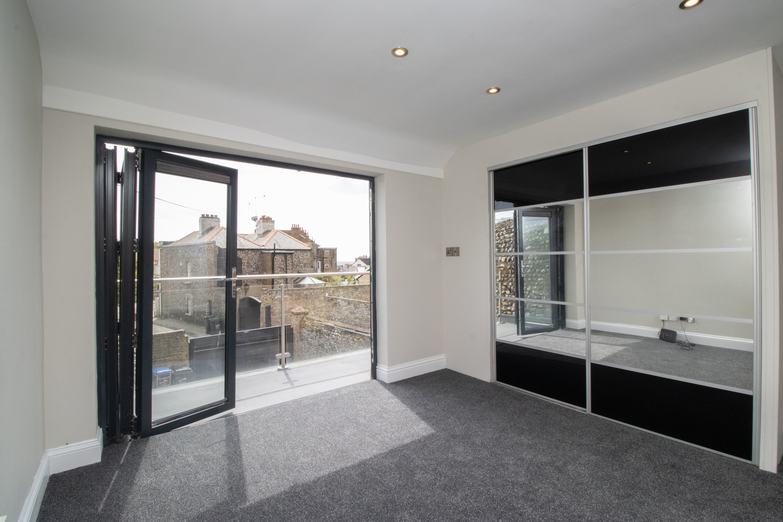 The master bedroom has the benefit of a double balcony and offers a distant seaveiw. Planning permission for a third bedroom in the roof space has been granted.