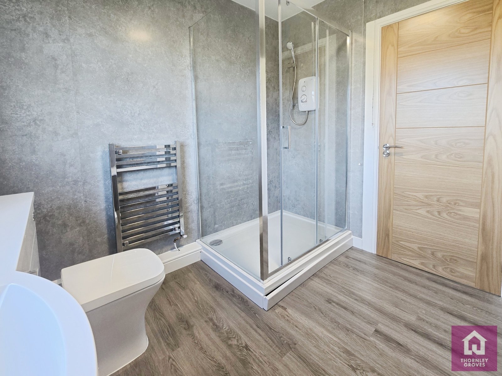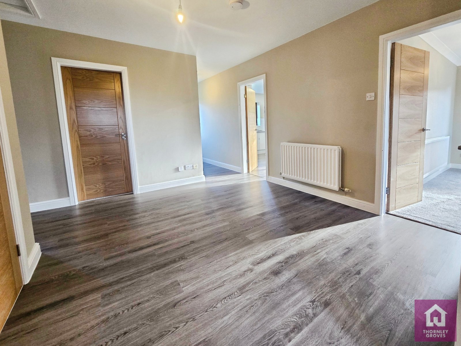 There are three double bedrooms, with the principal bedroom overlooking the rear garden and countryside beyond. The brand-new bathroom is fitted with a contemporary four-piece suite comprising a bath, walk-in shower, WC, wash basin and heated towel radiator.