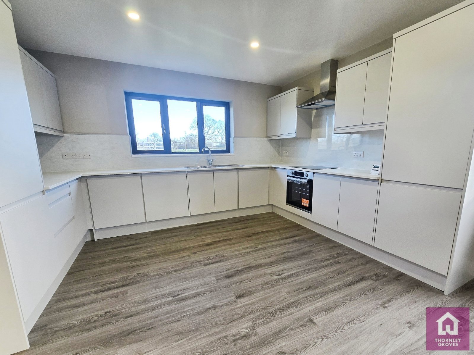 To the rear, the open-plan kitchen/diner has been fully refurbished and now offers a modern kitchen with built-in appliances including a fridge/freezer, dishwasher and washing machine, alongside a new boiler. The layout allows ample space for dining and everyday family use. All appliances, decoration and utilities are brand new, and the property has not been occupied since renovation, offering a genuine turnkey opportunity.
