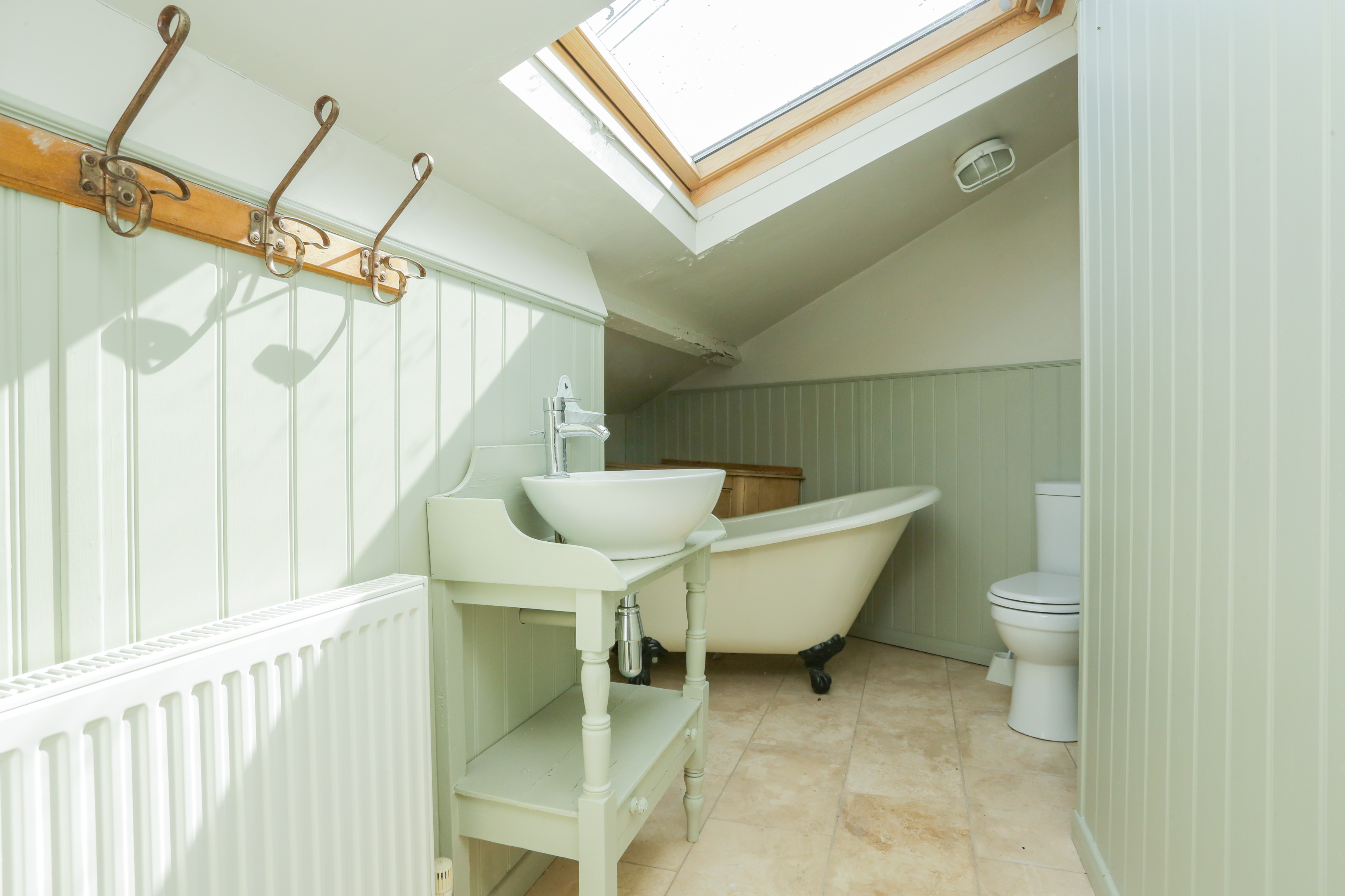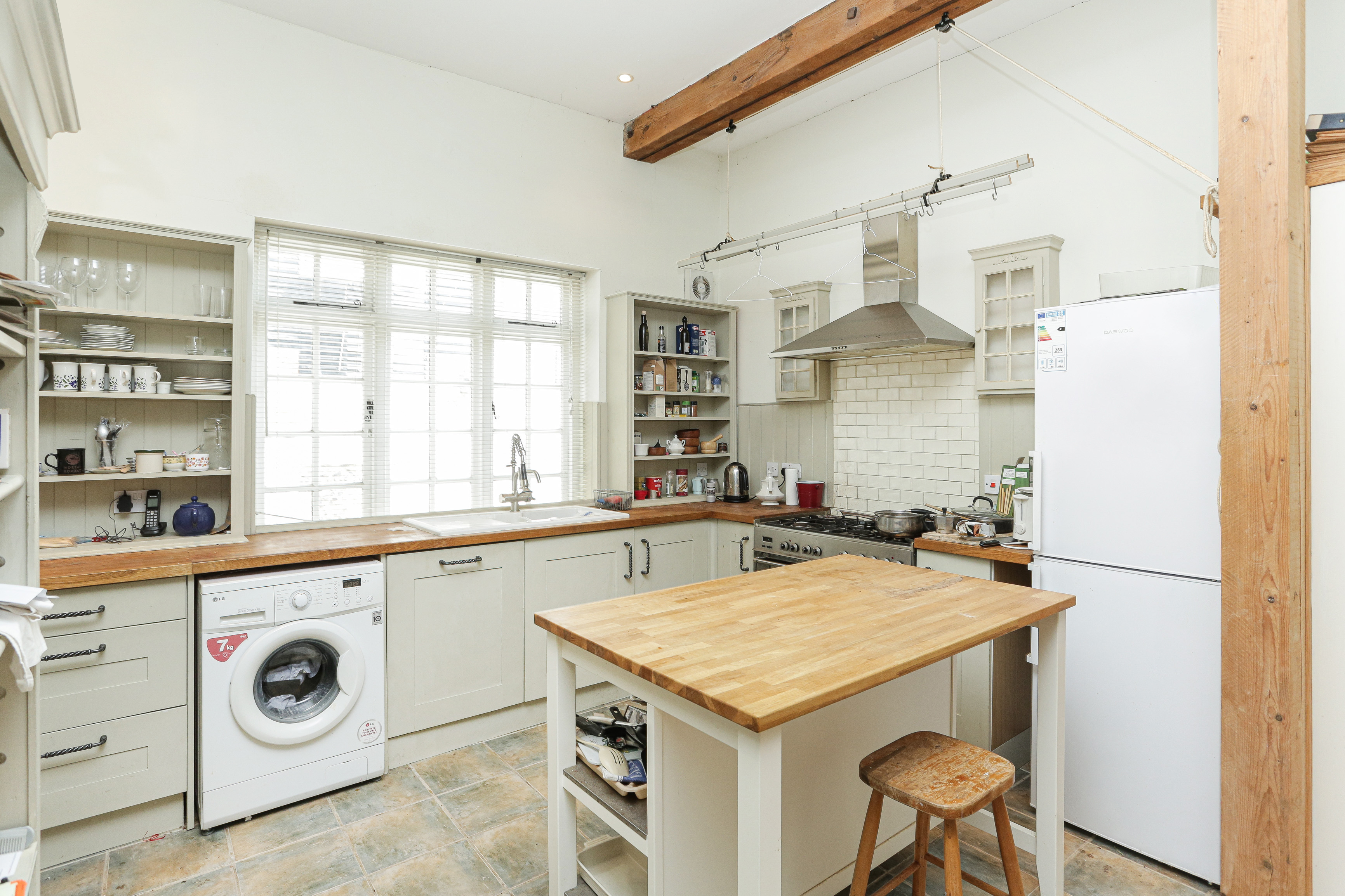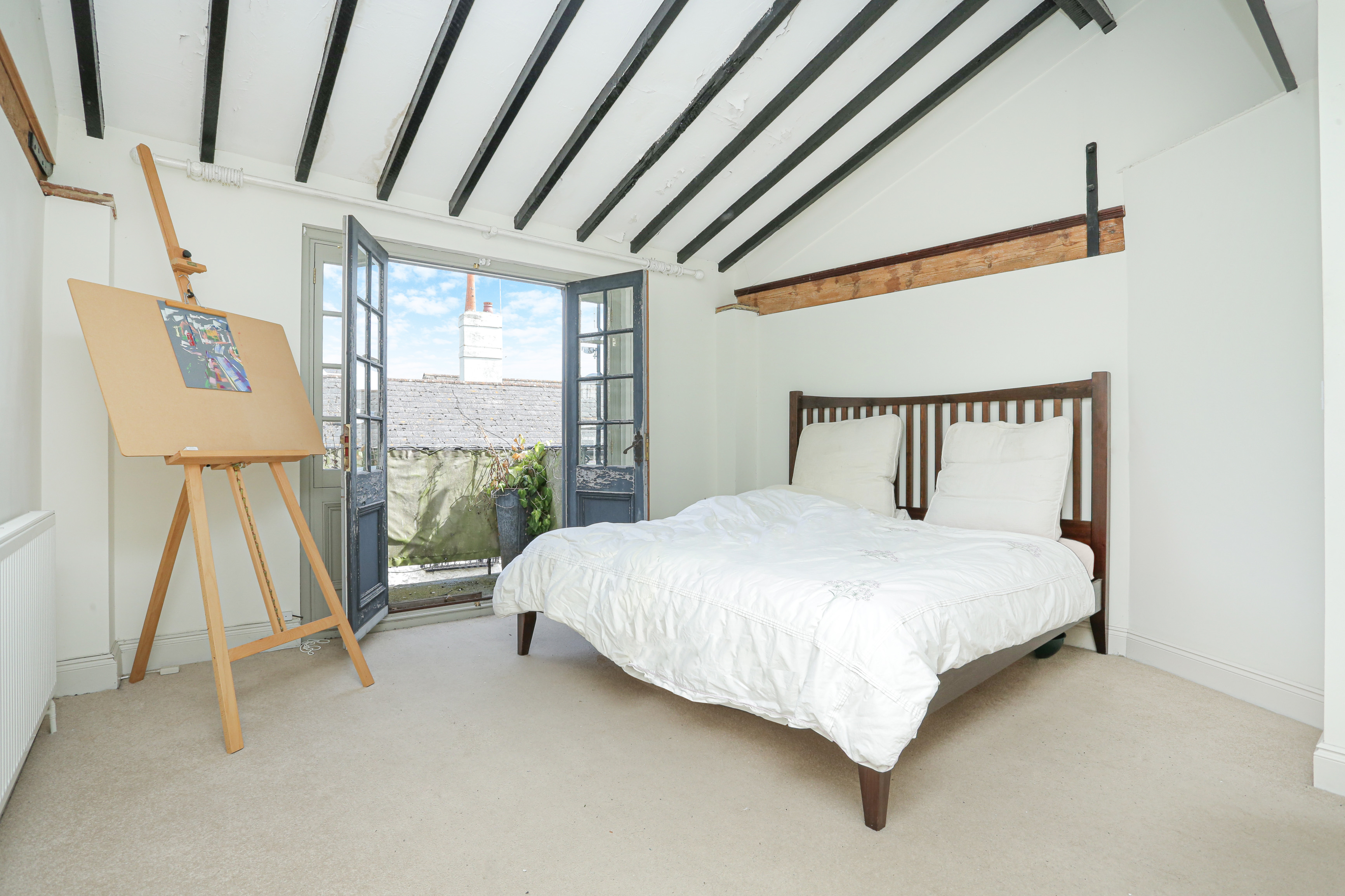 Entrance to the property is via period style solid wooden double doors which lead into a vestibule and also through a side door leading to separate WC and kitchen. This area has stripped wood floors and further period style double doors with bevelled glass inserts which open into the entrance hall. With flexible accommodation split over three levels, this unique property has a formal lounge, shaker style kitchen wood part fitted kitchen with wood tops and island unit, breakfast room and cloakroom on the ground floor, three double bedrooms with the master boasting vaulted ceilings and wooden beams and en-suite shower, guest bedroom with balcony benefiting from sideways sea views, third guest bedroom with sideways seaviews, and a family bathroom on the first floor and a further double bedroom with exposed brick wall and en-suite on the top floor.