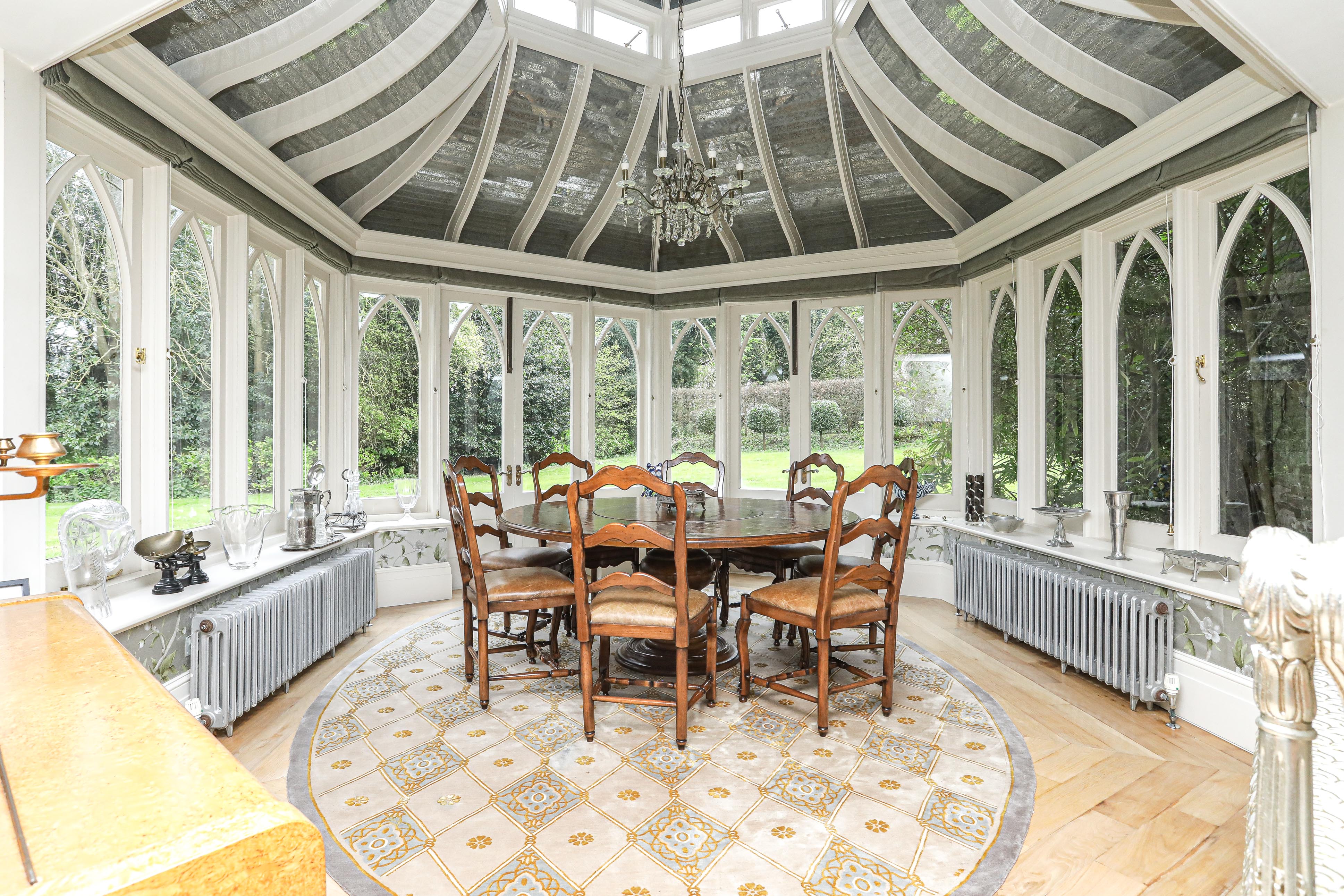 This exceptional property presents a rare opportunity to acquire a truly unique residence in the form of a historic Grade II listed Baronial Style Gothic Manor House. Enveloped in an intriguing history, this castle-like manor dates back in parts to the 17th century and has undergone significant restorations and improvements in the late 1990's and also in 2013. The property boasts a total of six bedrooms, each with its own en-suite bathroom, as well as five elegant reception rooms which exude both grandeur and charm. Additionally, the estate features a separate two-bedroom staff cottage and a detached guest house with four bedrooms, perfect for accommodating guests or extended family members in utmost comfort and privacy. Former stables have been meticulously transformed into a veritable retreat, complete with a kitchen, laundry room, cinema room, poolside bathroom complete with walk in shower and a studio style bedroom with a kitchen and en-suite bathroom. This astounding property is believed to have once served as a preparatory school and was even requisitioned during World War I, adding a layer of historical significance to its already remarkable allure.