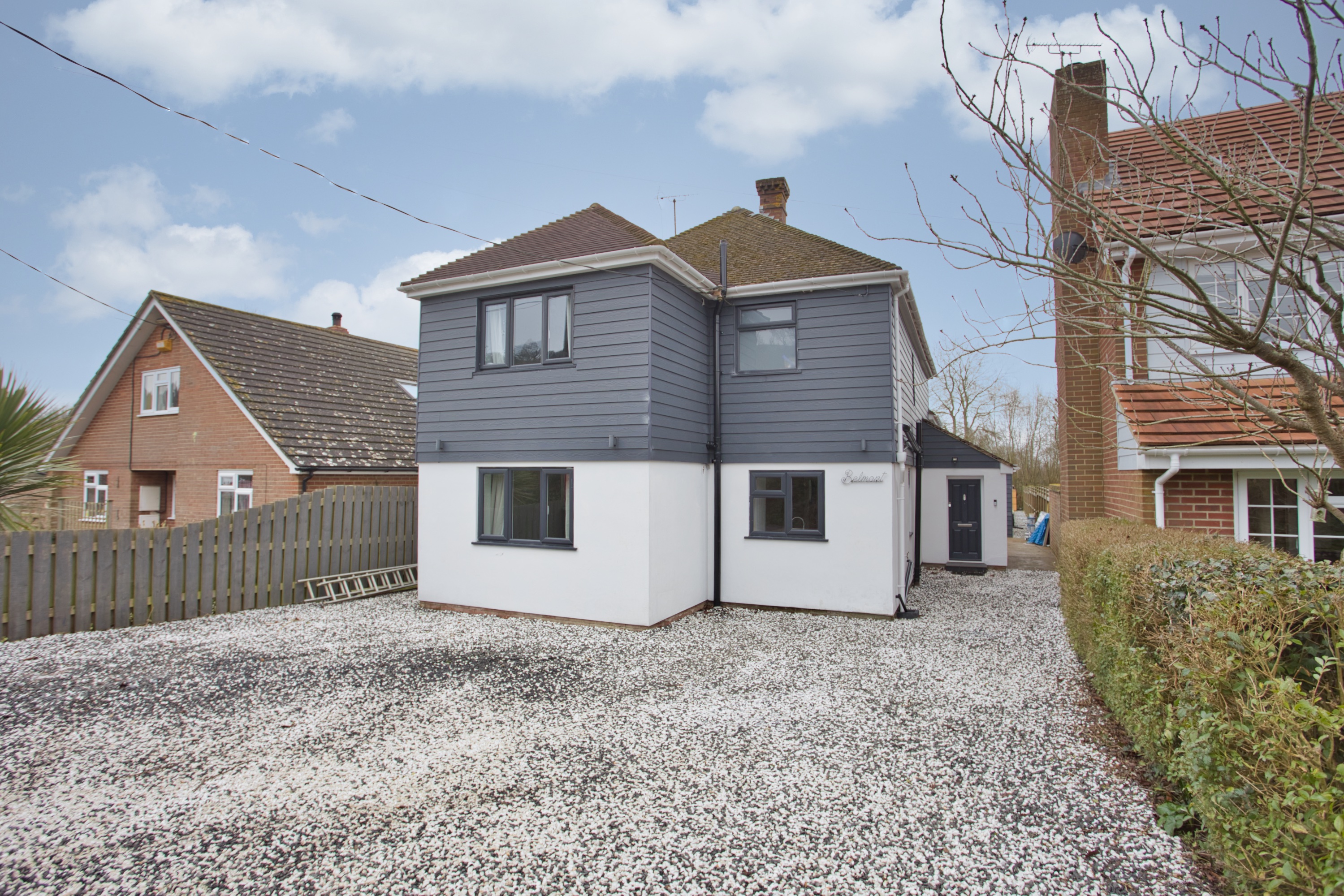 Nestled within the serene embrace of the picturesque countryside, this remarkable four-bedroom detached house offers the epitome of stylish and modern living. Recently refurbished and extended to an exceptional standard, this property exudes an air of sophistication at every turn. Boasting a south-facing garden spanning over 100 feet in length, the outdoor space offers a tranquil retreat with the added luxury of backing onto the scenic Royal Military Canal. The newly built garden room provides a versatile space that could serve as an office, studio, or annexe, catering to a myriad of lifestyle needs. The property's focal point is the stylish open plan kitchen that seamlessly flows into the garden via bi-fold doors, creating a perfect hub for both relaxation and entertainment. The bright lounge is accentuated by dual aspect windows that flood the room with natural light, enhancing the sense of spaciousness and warmth throughout. With four generously sized double bedrooms and three well-appointed bathrooms, this home provides the ultimate in comfort and convenience. The home has a bespoke design ideal for modern family living, downstairs WC, utility room and ample storage complete this perfect home.