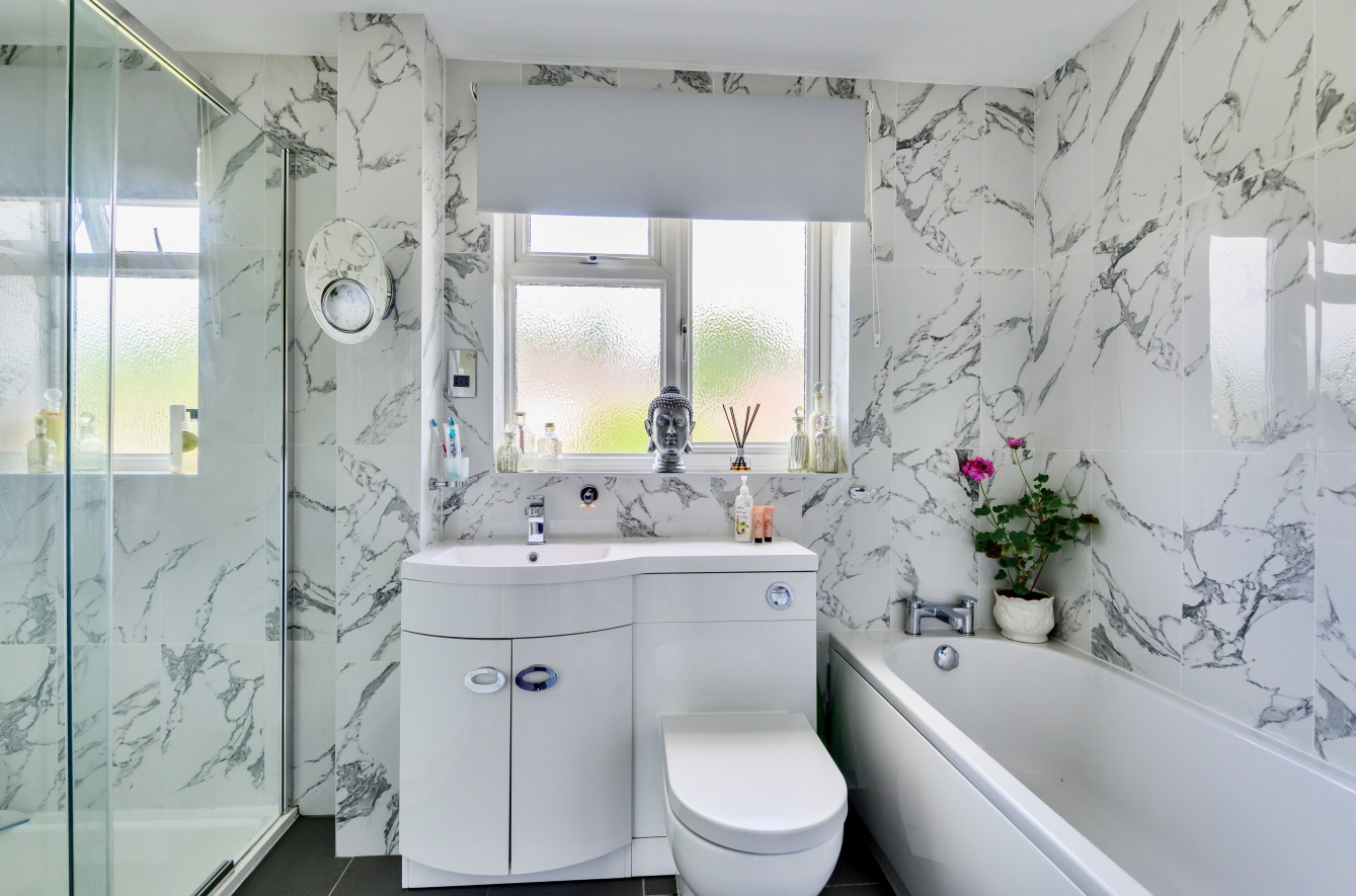 Presented to a high standard, the property features a contemporary kitchen, a utility room and downstairs cloakroom. The 21ft sitting/dining room, centred round oua feature fireplace, has French doors opening onto the garden patio, ideal for entertaining family and friends in the summer months. The original chimney is still in situ should the new owners wish to have an open fire or wood burner. Stairs lead up to the three bedrooms, served by the modern family bathroom.