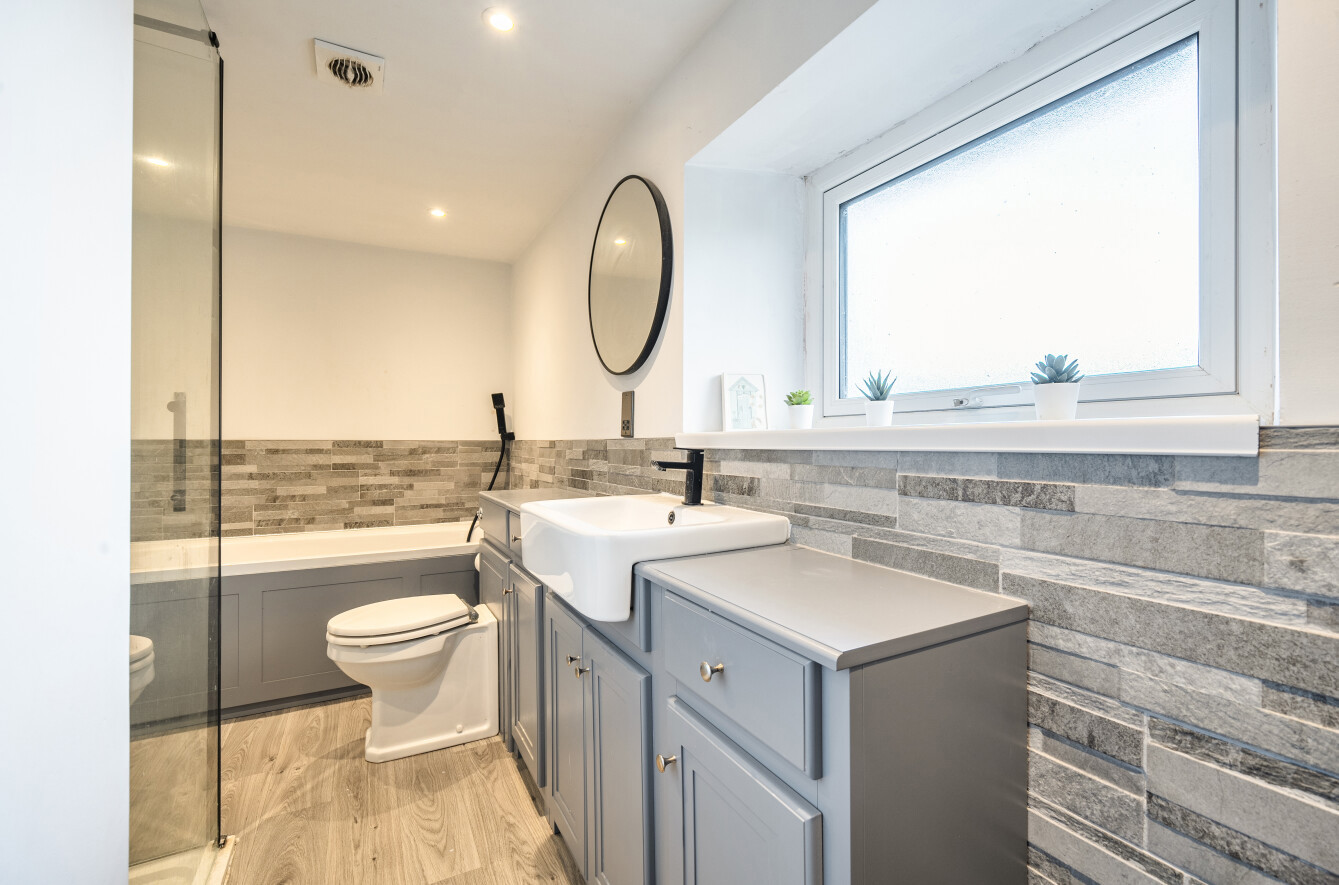 Upstairs, the first floor offers two further double bedrooms, both beautifully bright and enjoying exceptional views over the grounds, with a contemporary family bathroom featuring an elegant rolltop bath.
