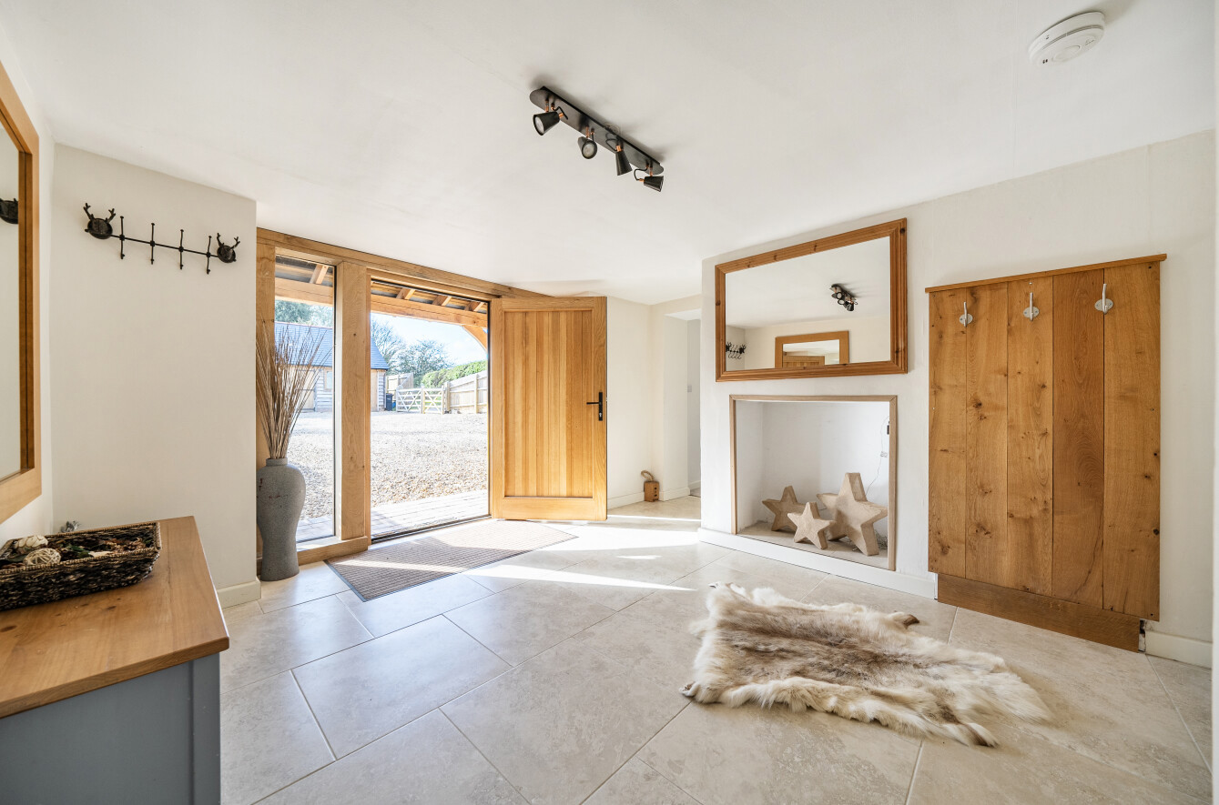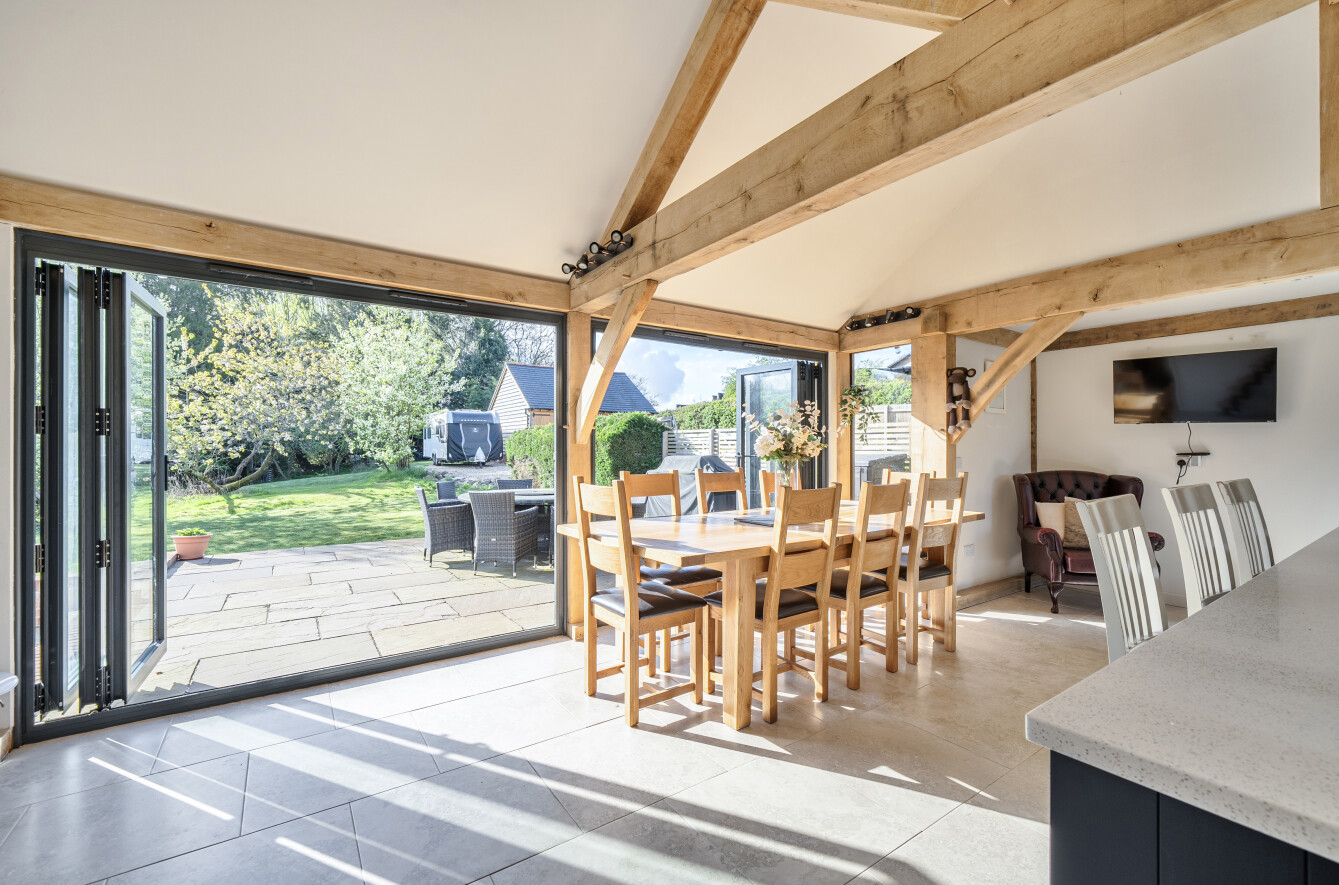 During their tenure, the current owner has carried out an exceptional programme of extension and improvement, resulting in a truly striking character home that makes full use of its privileged setting. The property blends period charm with modern comfort to impressive effect. Thick original walls, exposed timbers and a magnificent inglenook fireplace sit harmoniously alongside the contemporary green oak extension and open plan living spaces.