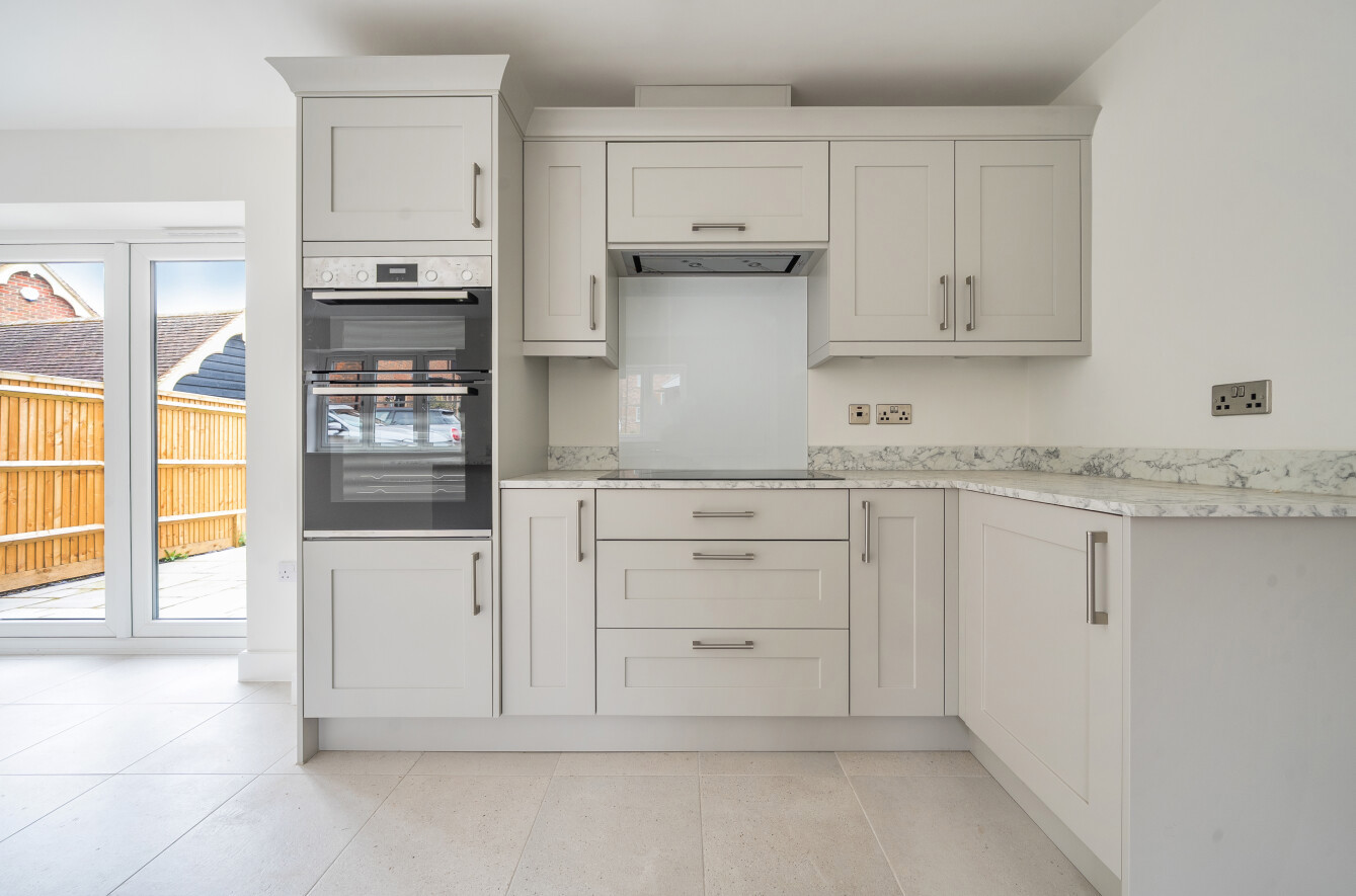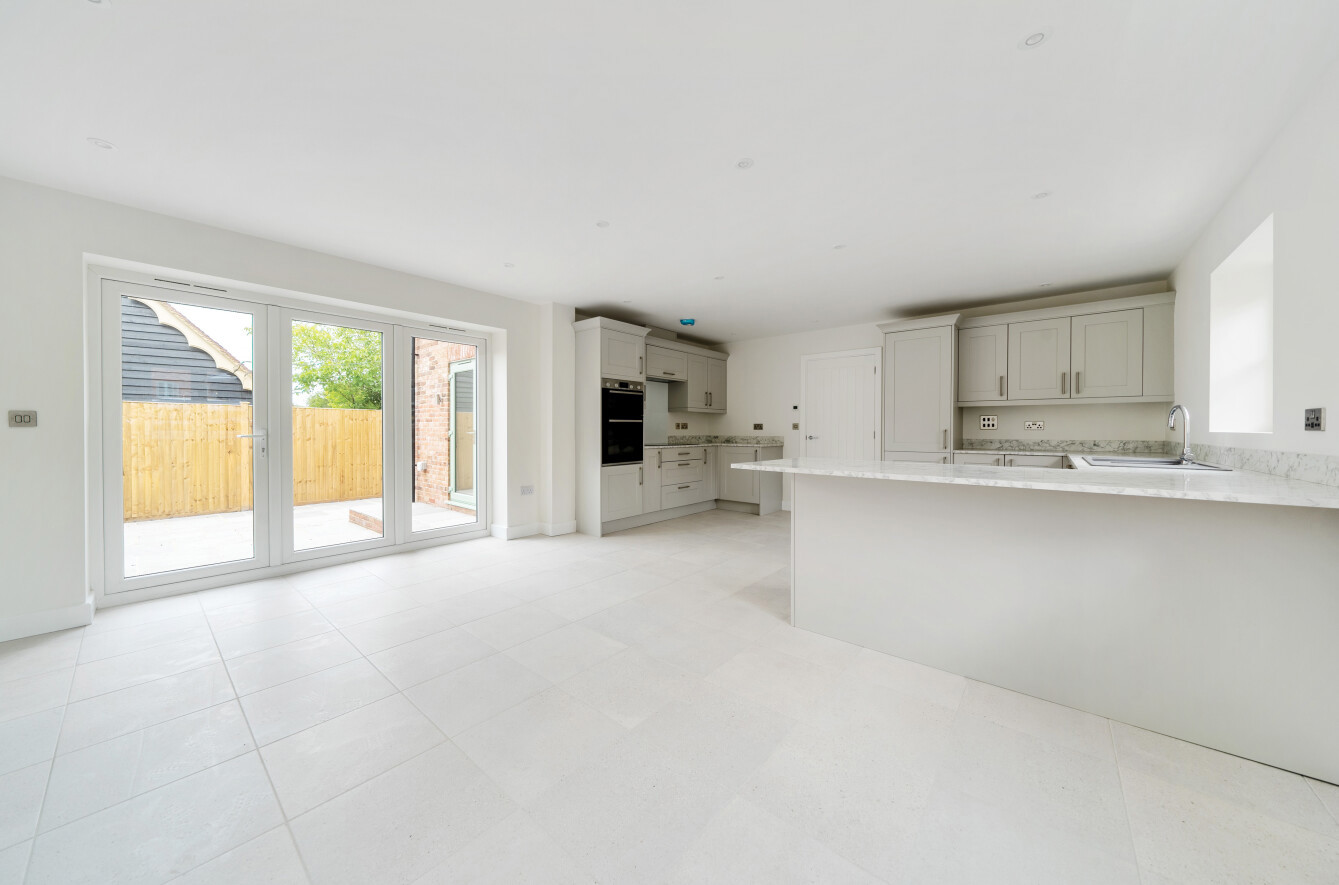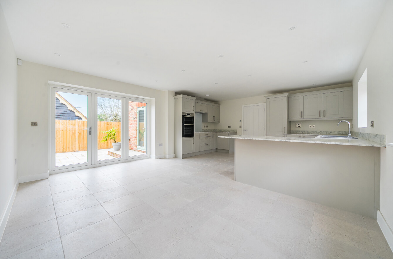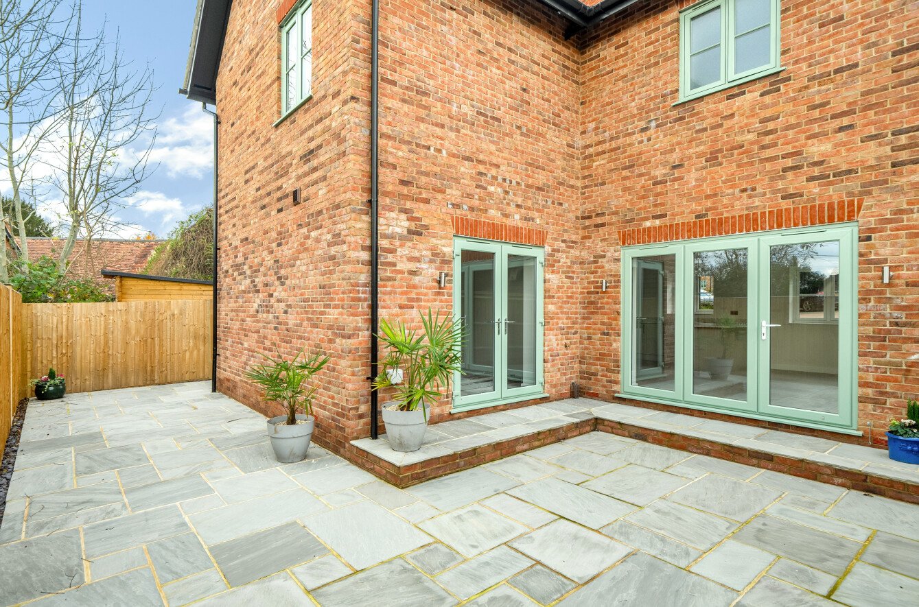 Entered via a welcoming hallway with built-in storage and a convenient guest cloakroom, a door opens to the beautifully appointed dual aspect kitchen/dining room with a sleek range of wall and base units and integrated appliances. Viso-fold doors provide access to the large patio terrace, ideal for indoor/outdoor entertaining. A comfortable sitting room further benefits from French doors to the patio terrace. The first floor continues to impress with four good sized bedrooms. The principal bedroom displays a luxury en-suite shower room and built-in wardrobes. Bedrooms two and four also have built in storage and the remaining bedrooms are served by the stylish family bathroom.