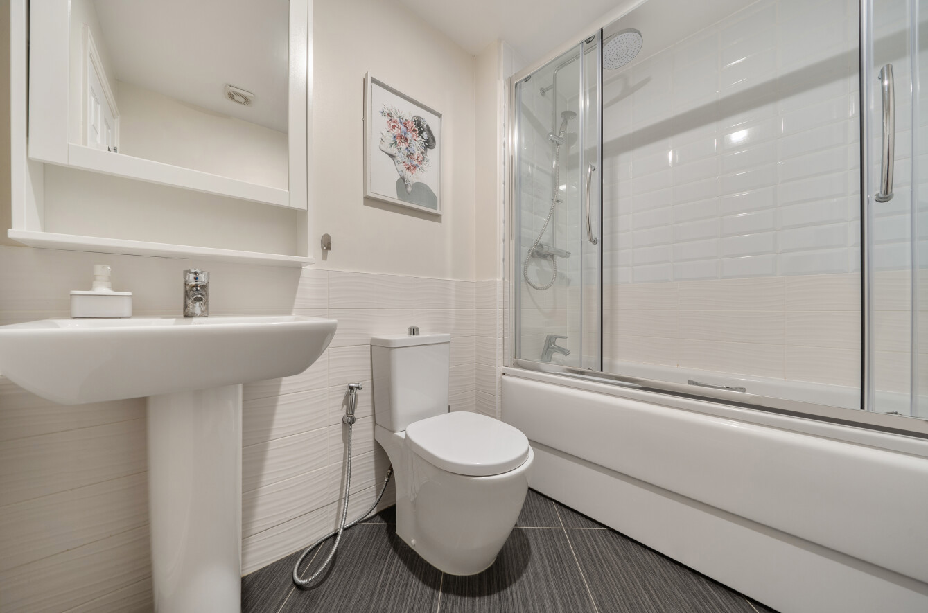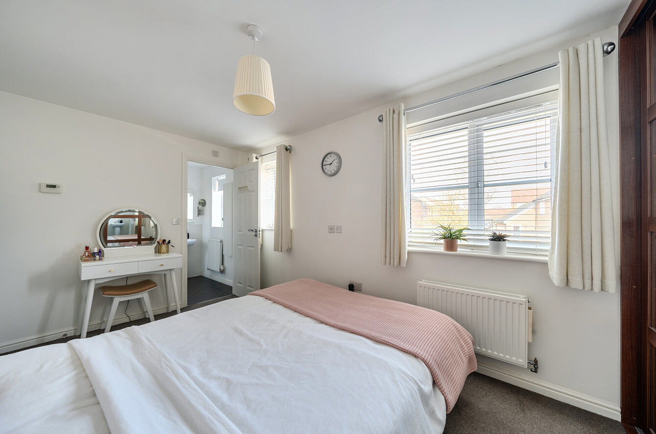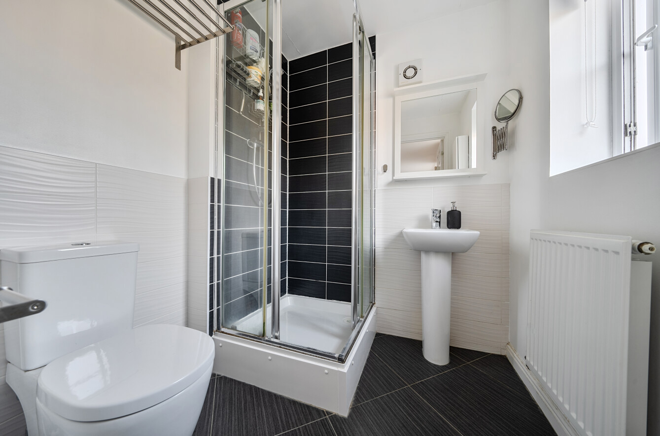The first floor continues to impress with three bedrooms. The principal bedroom enjoys an en-suite shower room and fitted wardrobes, while the contemporary family bathroom serves the remaining bedrooms.