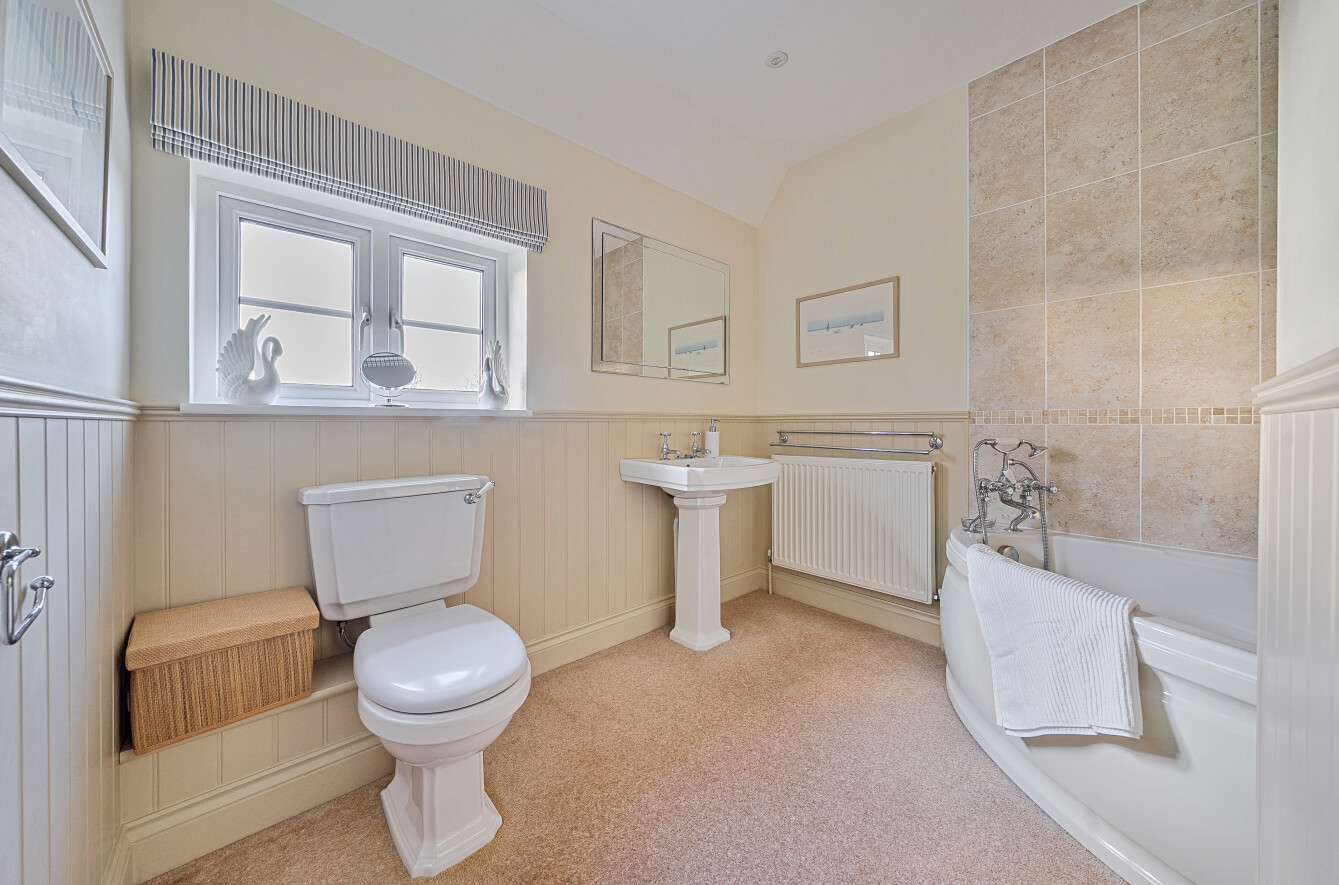 Also on the ground floor you’ll find a study, snug room and a convenient downstairs WC, spaces that offer flexibility and practicality. Upstairs, the home presents four well-proportioned bedrooms. The principal suite comes with its own en suite bathroom, and the remaining three bedrooms are served by the main family bathroom.