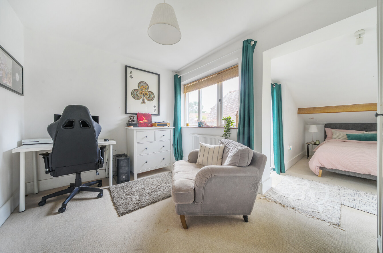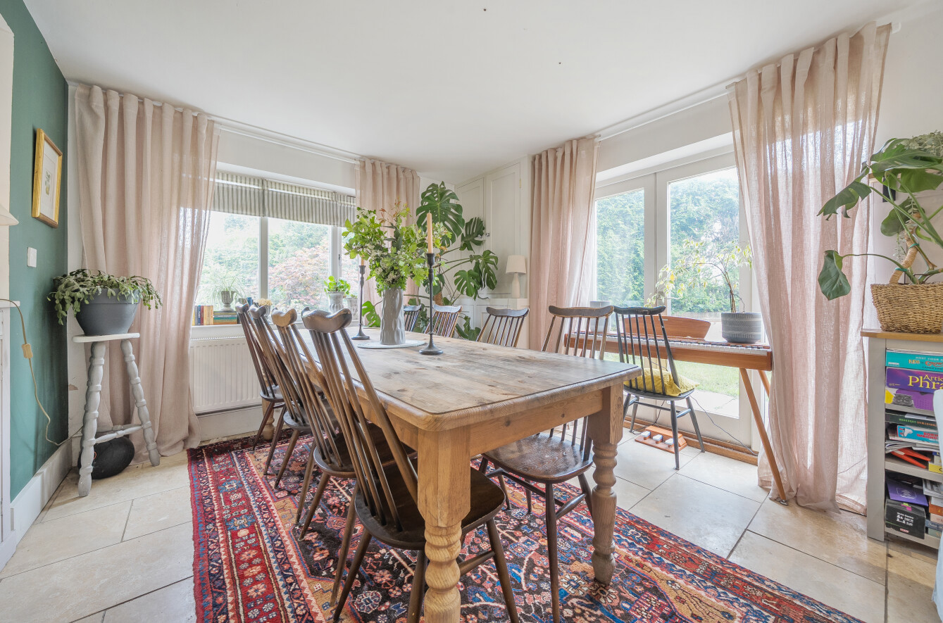 For quieter moments, a separate sitting room offers a cosy retreat, while upstairs, the sense of space continues with five bedrooms. Two of the bedrooms enjoy en-suite facilities, including the principal suite, which is further enhanced by a luxurious dressing room.