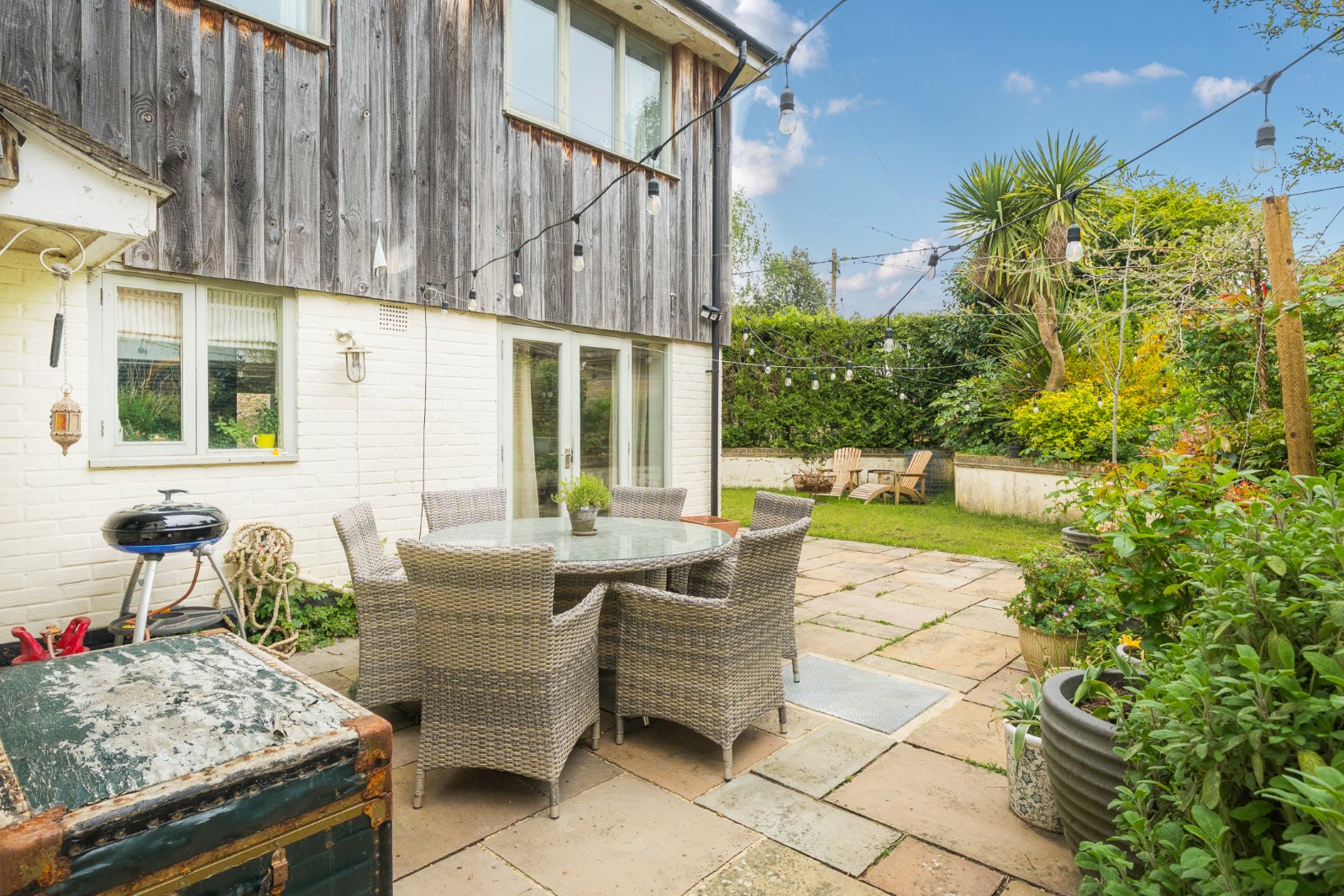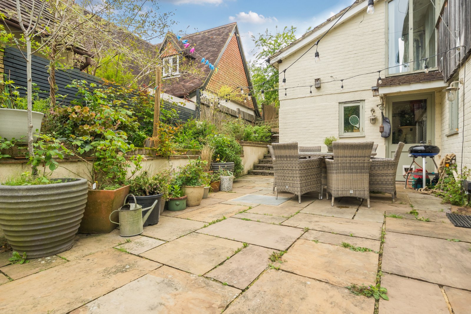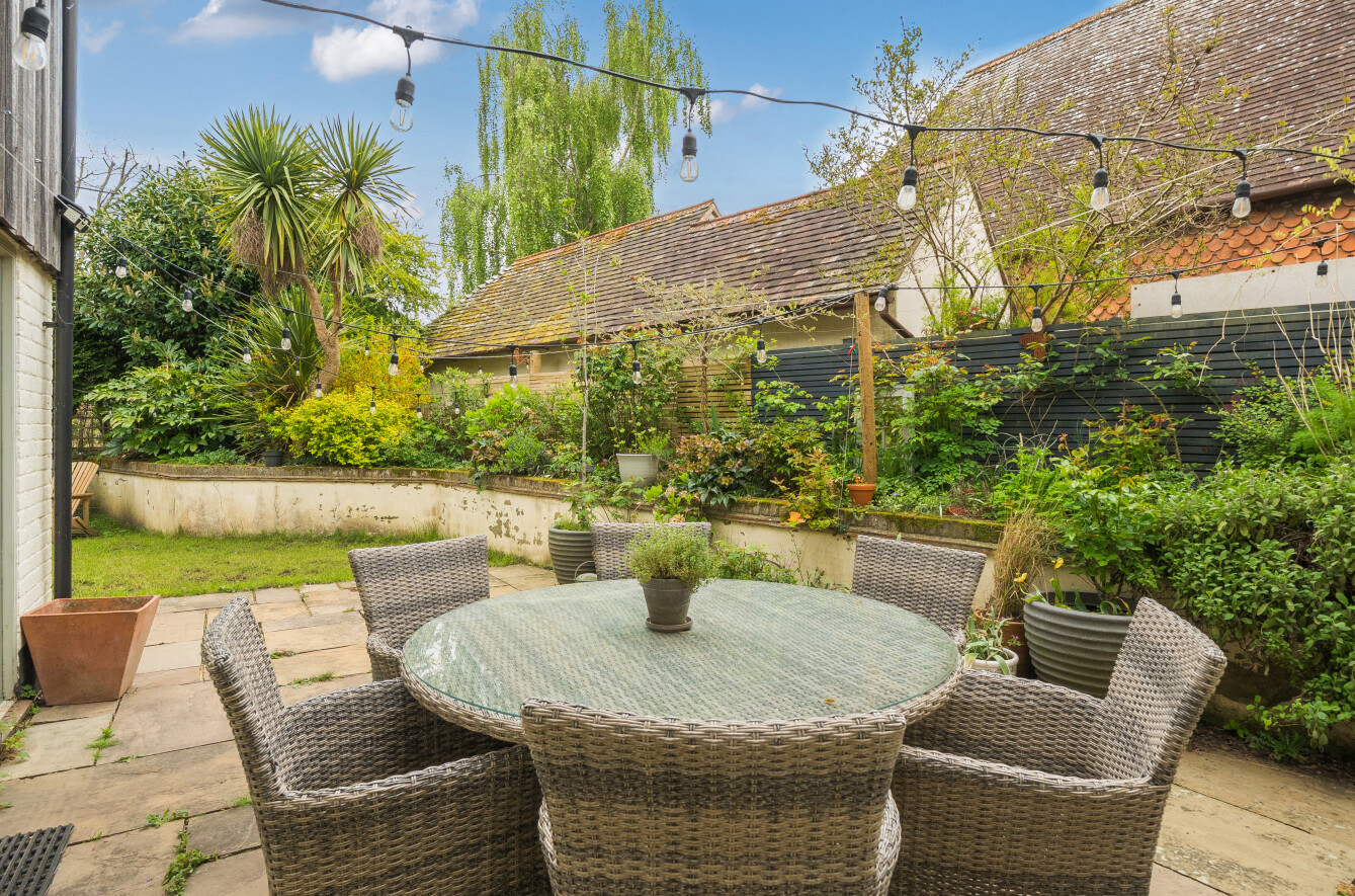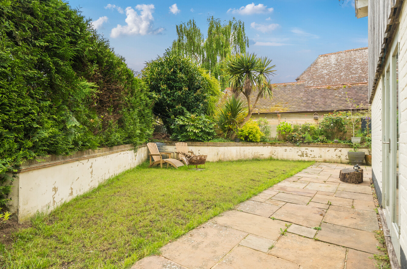 A beautifully remodelled family bathroom serves the remaining bedrooms, and one bedroom enjoys direct access to an intimate garden space, complete with raised planters—a peaceful spot to enjoy a morning coffee. Outside, the gardens are a true delight, thoughtfully landscaped to create several terraced areas where you can chase the sun, entertain friends, or simply unwind in the tranquillity of your own private retreat.