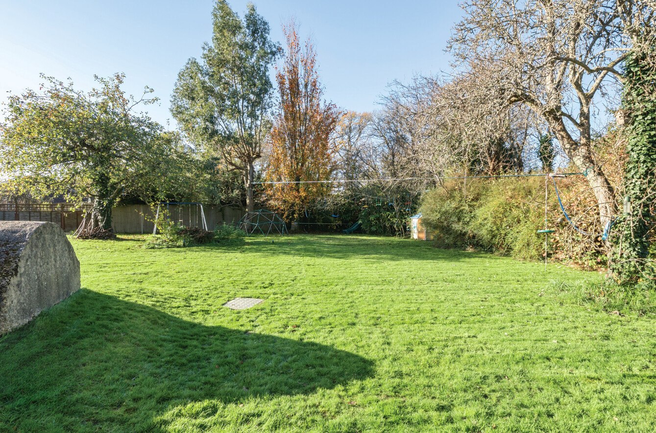 Externally, the home benefits from a large driveway, a double garage, and a substantial workshop providing excellent storage or hobby space. The wide, sunny garden is a standout feature, enjoying afternoon and evening sun and an unusually well-preserved wartime bomb shelter adds a unique and charming historic touch.