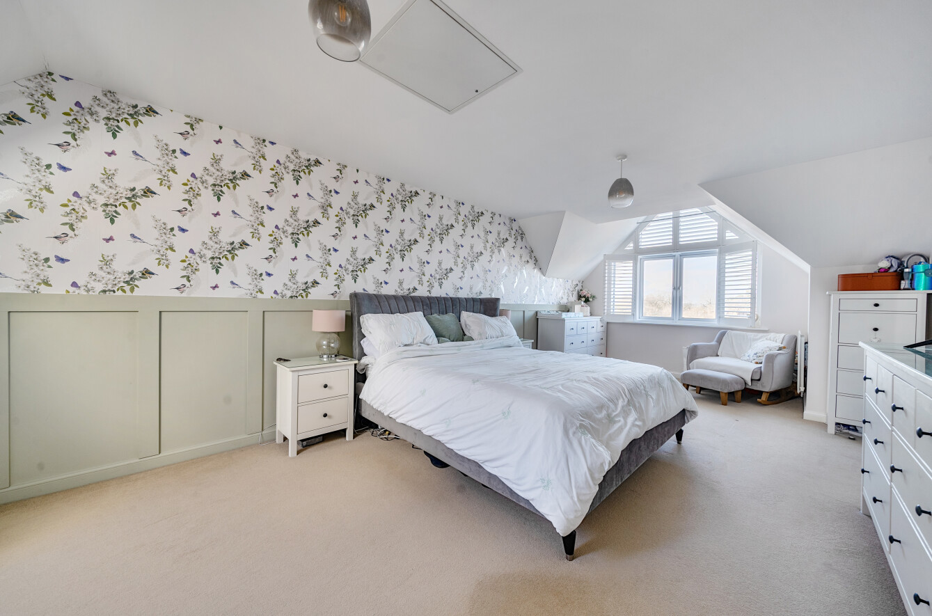 The home benefits from a range of notable energy-efficient features and is finished to a high standard throughout, with premium kitchen and bathroom fittings. A particular highlight is the expansive principal bedroom suite, which includes a dressing area and a luxurious en-suite bathroom, all enjoying stunning views across the adjacent nature reserve through a striking apex picture window.
