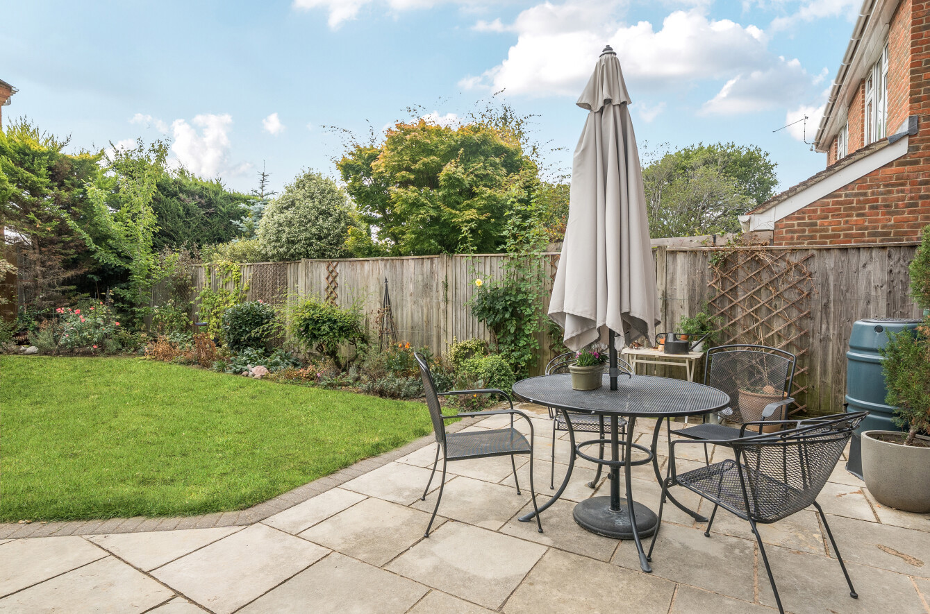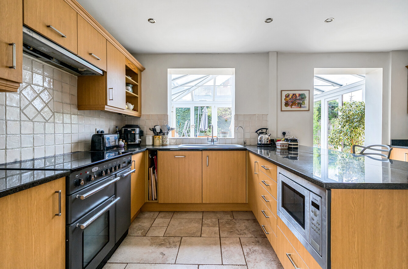 A generous entrance hall welcomes you with doors opening to the sitting room with a feature fireplace and sliding doors to the outside. There is a separate study ideal for home working, and a well-appointed kitchen/dining room with a range of wall and base units and a breakfast bar that opens into a light-filled conservatory—creating a superb space for dining and entertaining. A utility room complements the kitchen and provides additional storage space. A convenient guest cloakroom adds to the practicality of the layout, offering flexibility and comfort throughout.