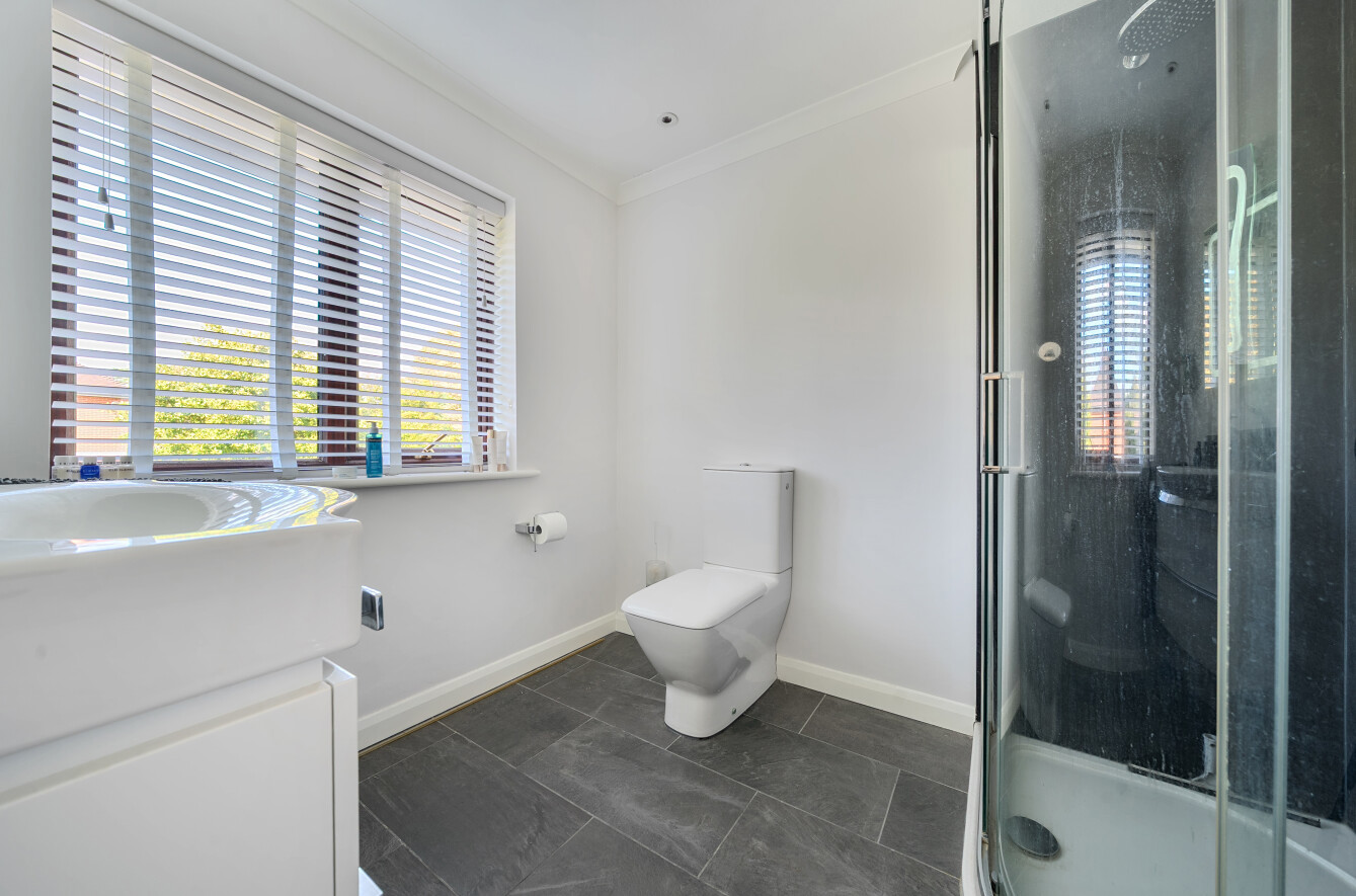 Upstairs the principal rear facing bedroom has fitted wardrobes and modern fitted en suite with corner shower. The other two bedroom are served by the family bathroom.