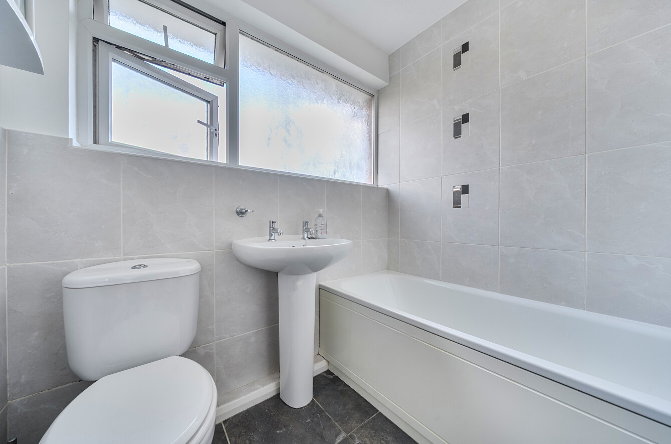 Upstairs, the accommodation comprises two well-proportioned double bedrooms, the principal fitted with integrated wardrobes, alongside a single bedroom. These are served by a family bathroom, recently updated with a new shower. Additional storage is provided by a boarded loft, accessed via a pull-down ladder.