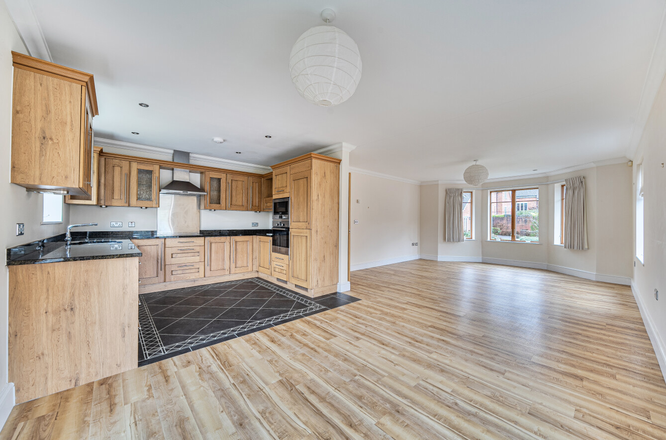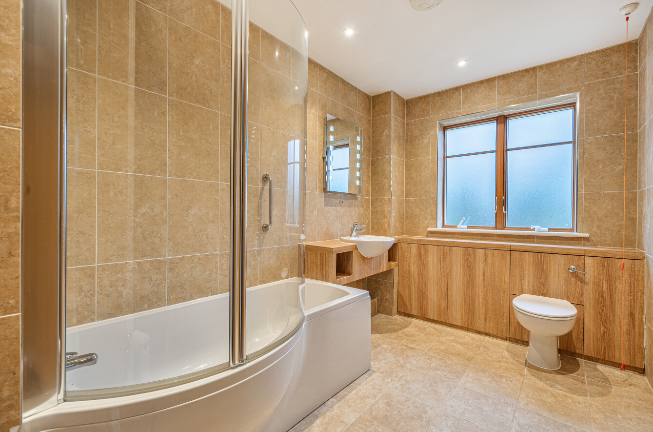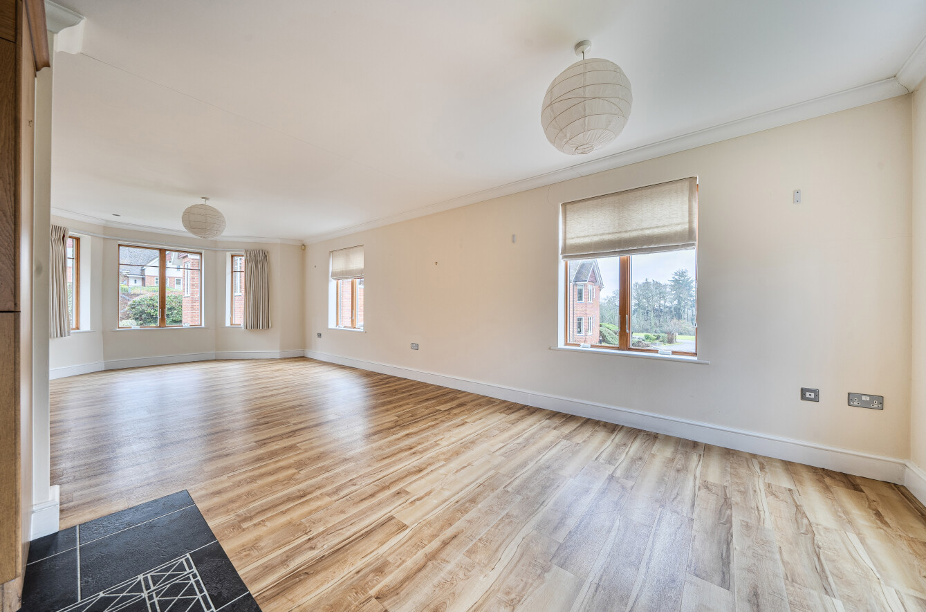 The apartment offers two generous double bedrooms, with the principal bedroom benefiting from an en suite shower room and a large bay window overlooking the surrounding woodland. The second bedroom is also a comfortable double, ideal for guests or as a hobby room.