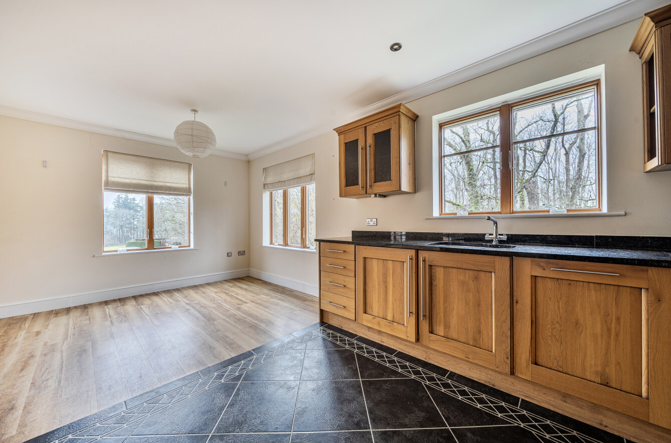 The kitchen/dining area enjoys stunning west-facing views across the sweeping driveway and rolling countryside beyond, creating a bright and pleasant space for everyday living.