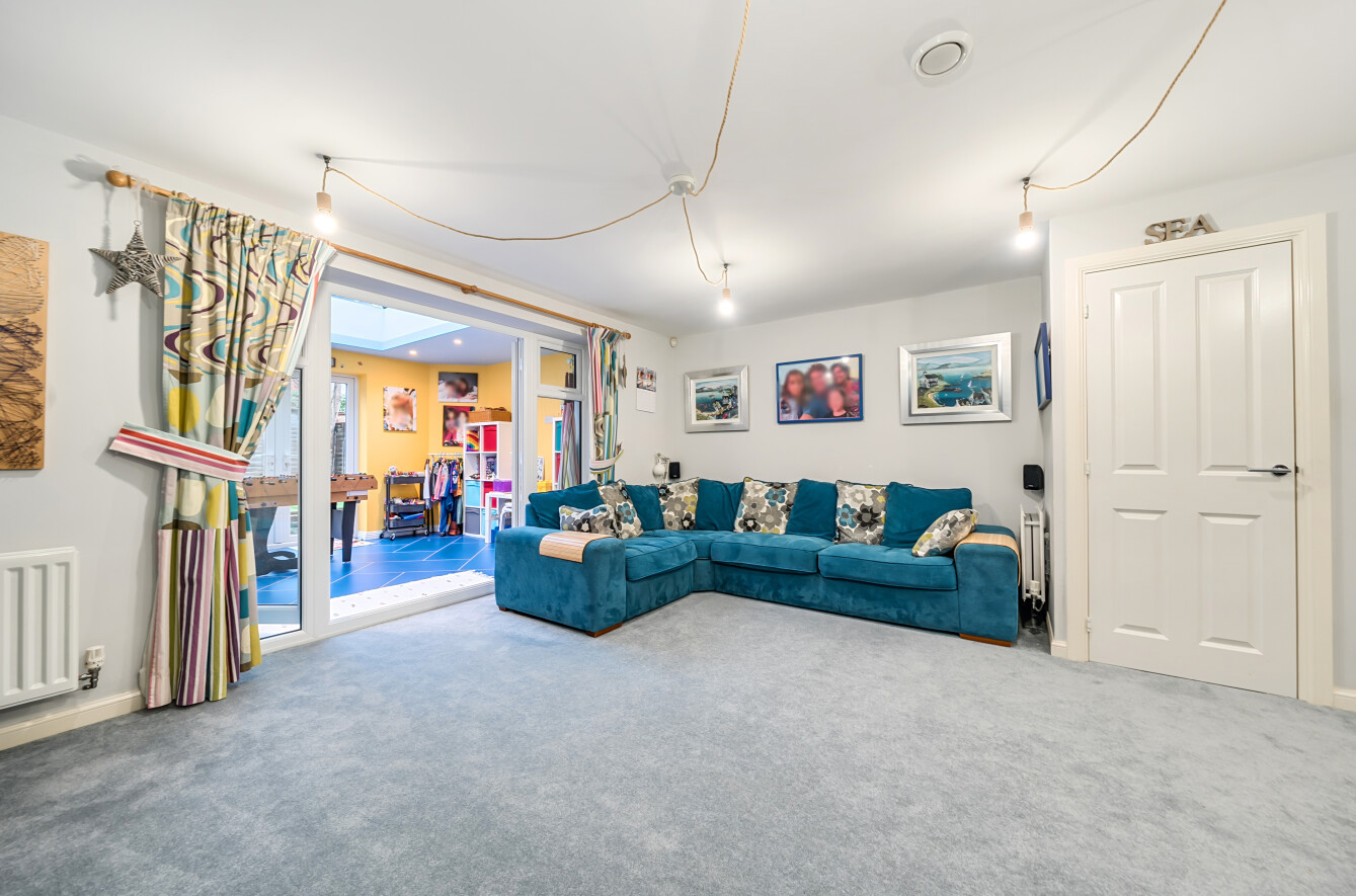 The property offers driveway parking and a single garage to the Side. Inside, the ground floor features a modern open-plan kitchen/dining/living area, ideal for contemporary living, along with an orangery to the rear providing a useful additional reception space overlooking the attractively landscaped rear garden. A practical utility area is located to the rear of the garage.